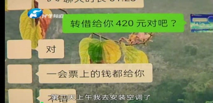 晚上8点左右,对方又发来消息说,借130元急用,手机里没有零钱了,等明天空调装好一起给,张先生没有丝毫怀疑,给对方转了过去。隔天早上,张先生正准备去酒店安装空调,没想对方又发来消息说再借420元,等到酒店了马上一起给。