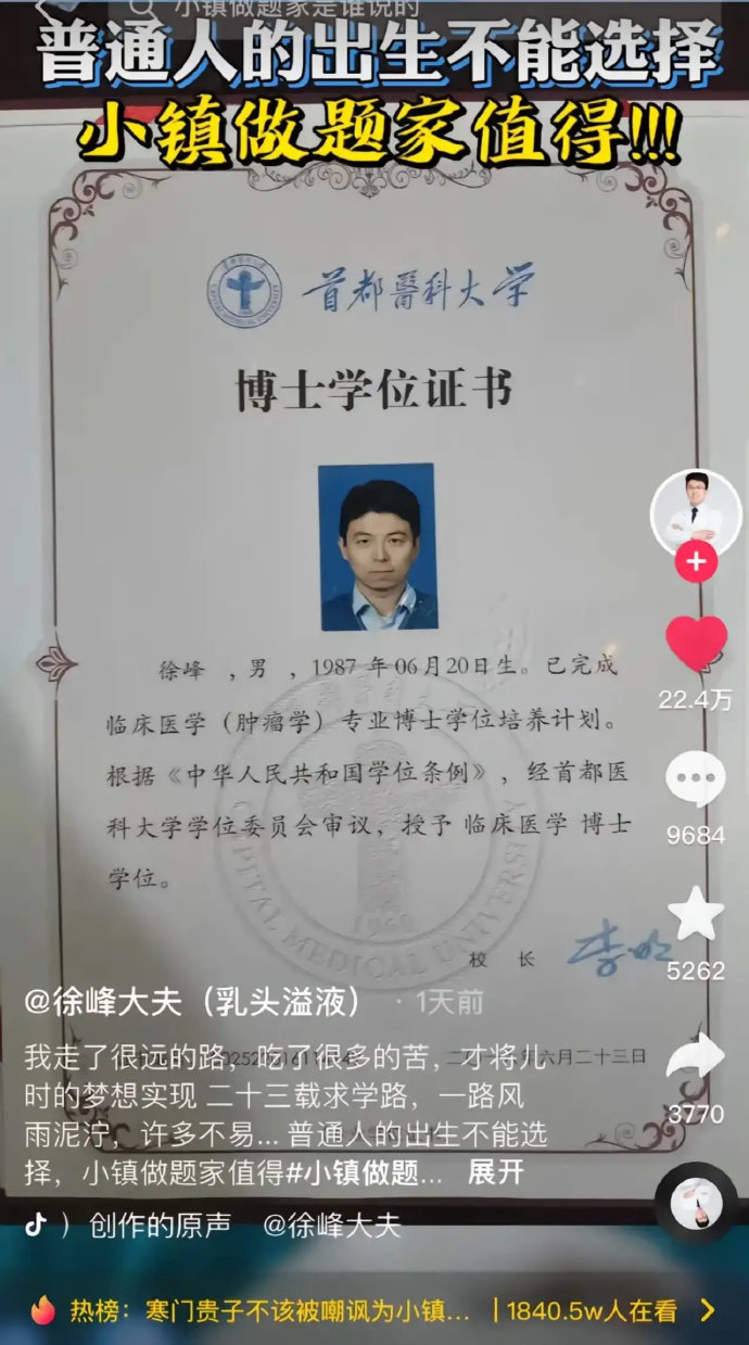 一个小镇做题家,炸出无数个医学界的大佬发声!医学没有后门,和死神抢人的职业,容不得弄虚作假!