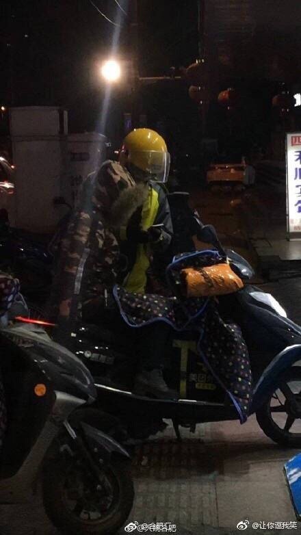 合肥街头,男朋友去送外卖,女生就在电动车上等他。这么冷的天,自己缩成一团,也可以等着男朋友一起下班,天很冷,爱情很伟大。祝福他们