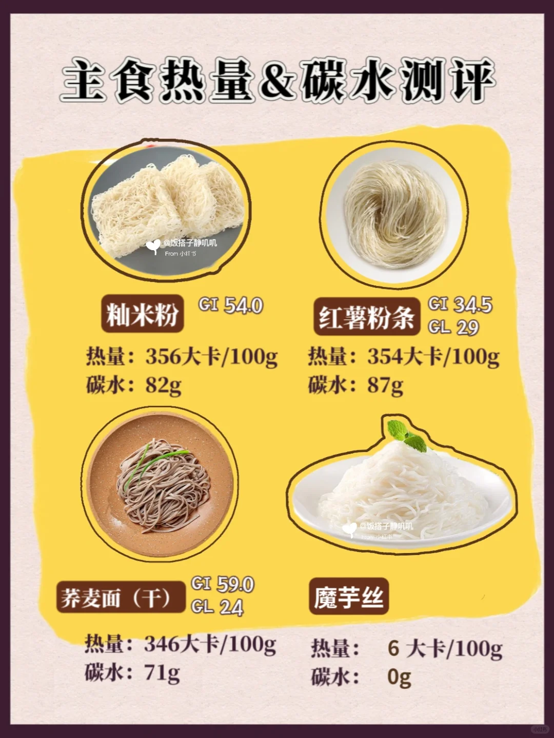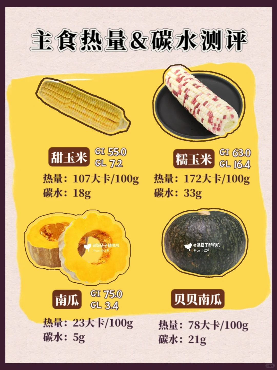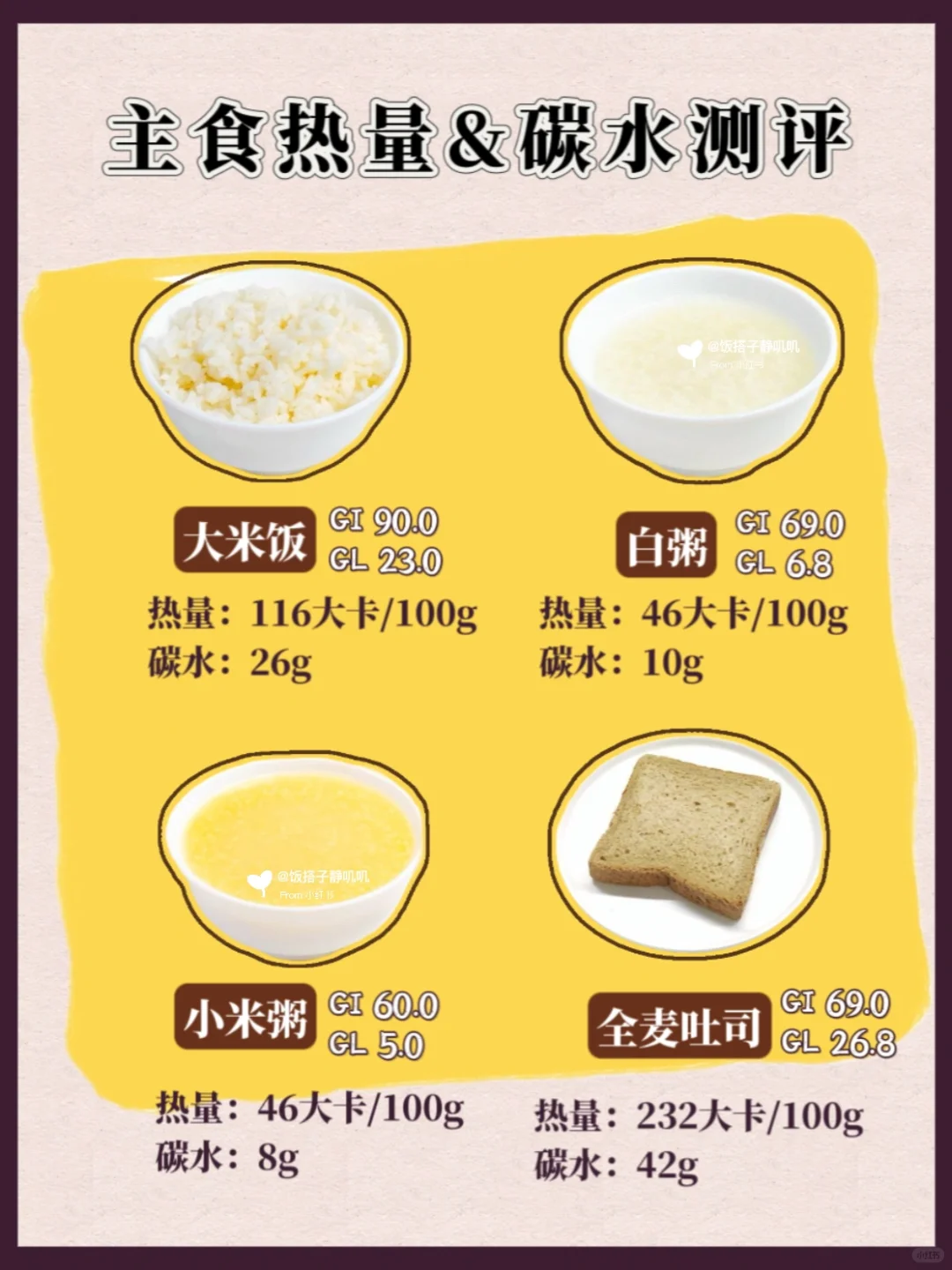 这期跟大家整理分享日常一些常见主食的热量和碳水含量~