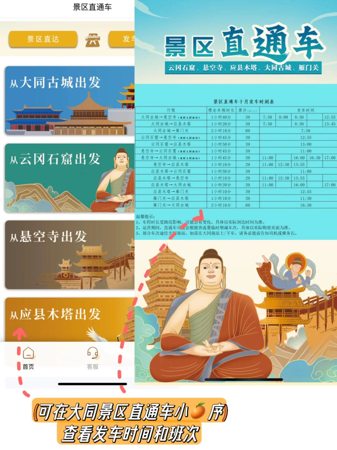 ▪️去应县木塔坐高铁🚄(时间不受限制,因为景区直通车一天就两个时间段🈶,高铁半个小时时间,下了地铁有木塔的直通车在等10r/人)