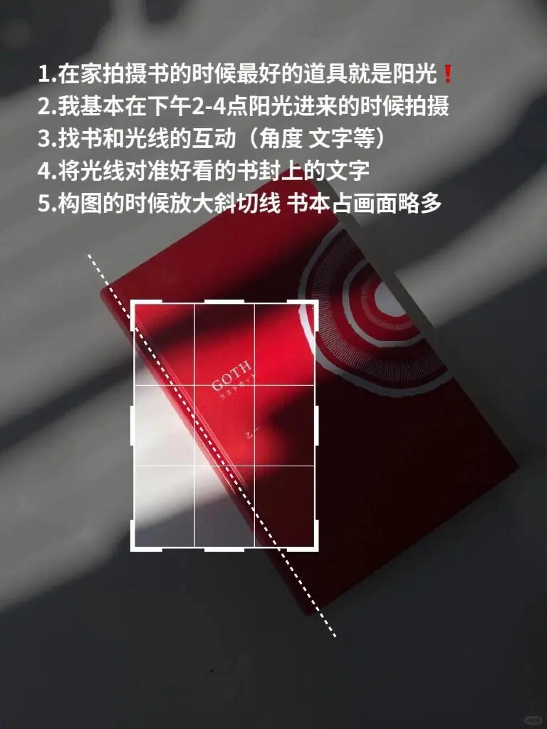 1⃣️我一般是下午2-4点光线会进入到房间内的时候拍摄 多找光阴跟书互动的效果