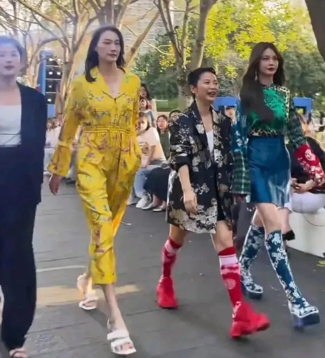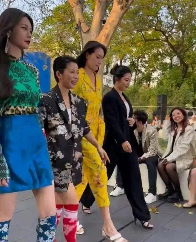 令人意想不到的是,43 岁的谢杏芳在经历了生育这一人生重要阶段后,反而如凤凰涅槃般,愈发美丽动人。她的首次 T 台造型堪称惊艳绝伦,那复古风高腰小翻领七分连体裤,仿佛是时光长河中打捞上来的珍宝,承载着岁月的韵味与时尚的灵魂。脚下的白色高跟鞋如同水晶般闪耀,为她的步伐增添了一份优雅与自信。她款款走来,宛如时尚界的女王,给人一种眼前一亮的奇妙感觉。再配上那头过肩短卷发,恰似灵动的音符在空气中跳跃,时髦之中不失雅致韵味,于简简单单之中,将女性那迷人的魅力展现得淋漓尽致,宛如一首无声的诗歌,诉说着她的独特魅力。