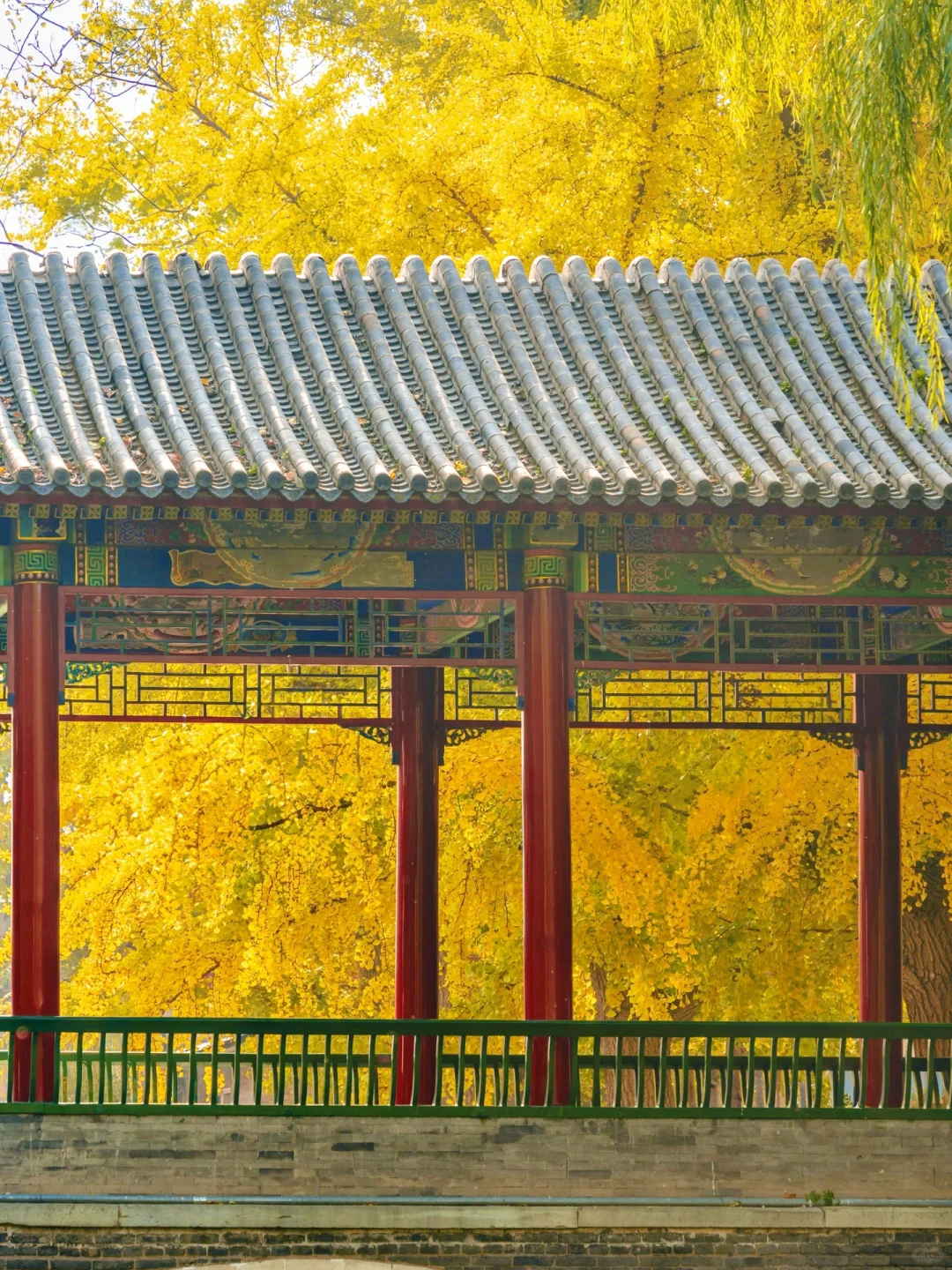 2️⃣古风银杏|📍长廊 — 水榭|🍂黄了90%