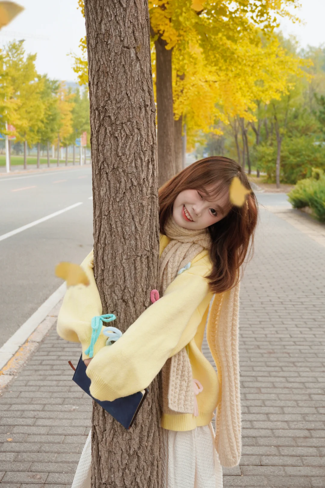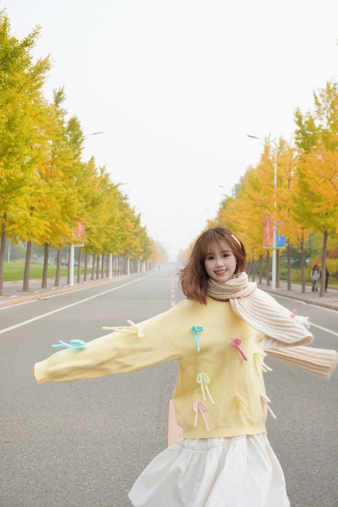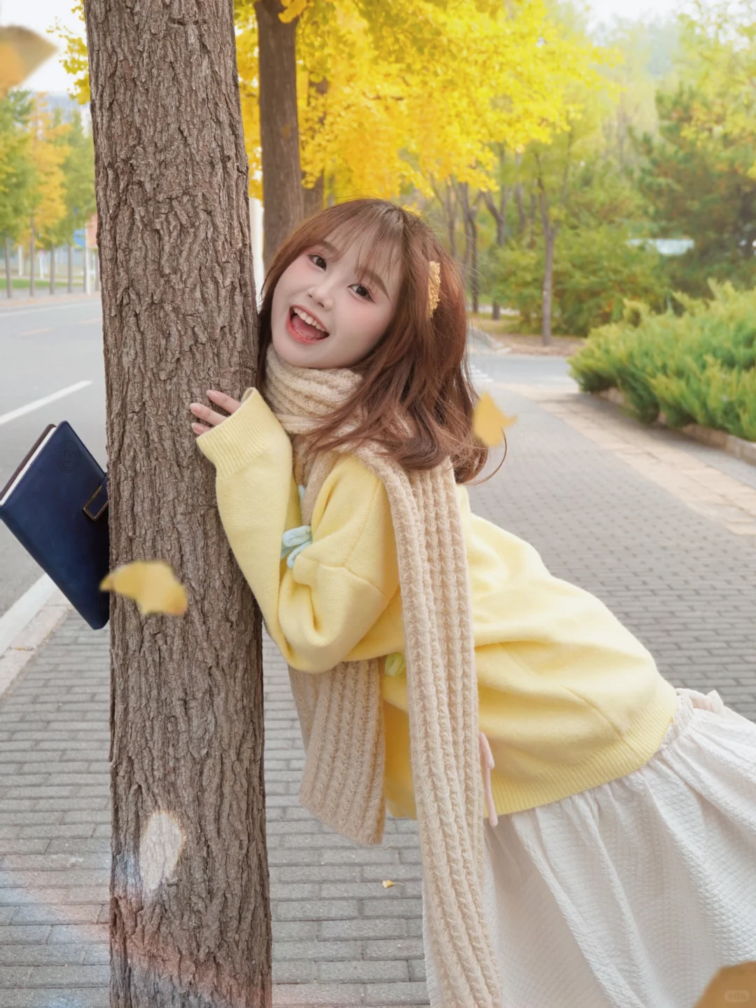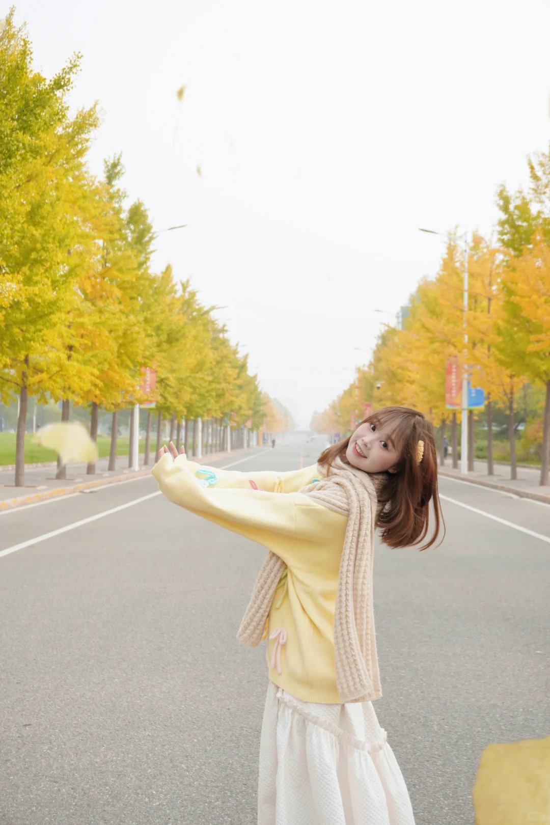 满道的银杏树 和阿姨叔叔们刚扫完叶子的干净地面,空中的落叶是后期加的 一开始想和妹妹拍那种在地上抛银杏叶的,但是地面太干净了就没有拍,不过拍到这样空旷的地面和满叶的银杏也很难见,阿姨叔叔们都辛苦啦 📷: