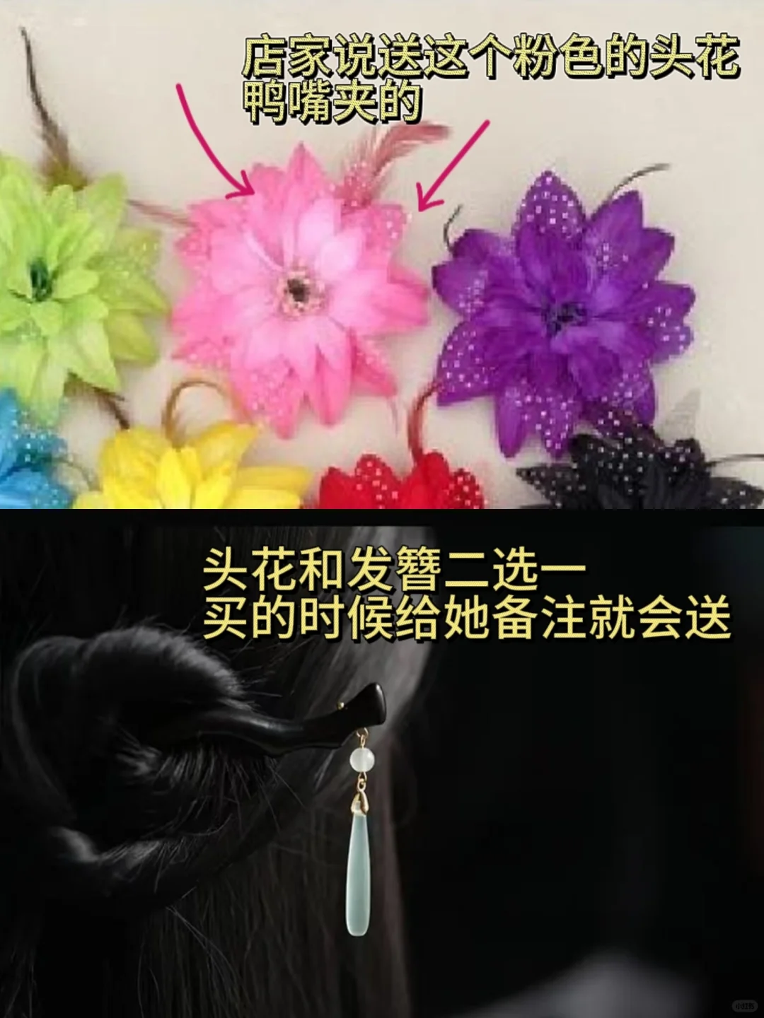 二编:dianjia说可以送发簪或者头花二选一,宝宝们买的时候备注就会送,我感觉发簪可能要好搭配些其他衣服,粉色头花搭身上这套
