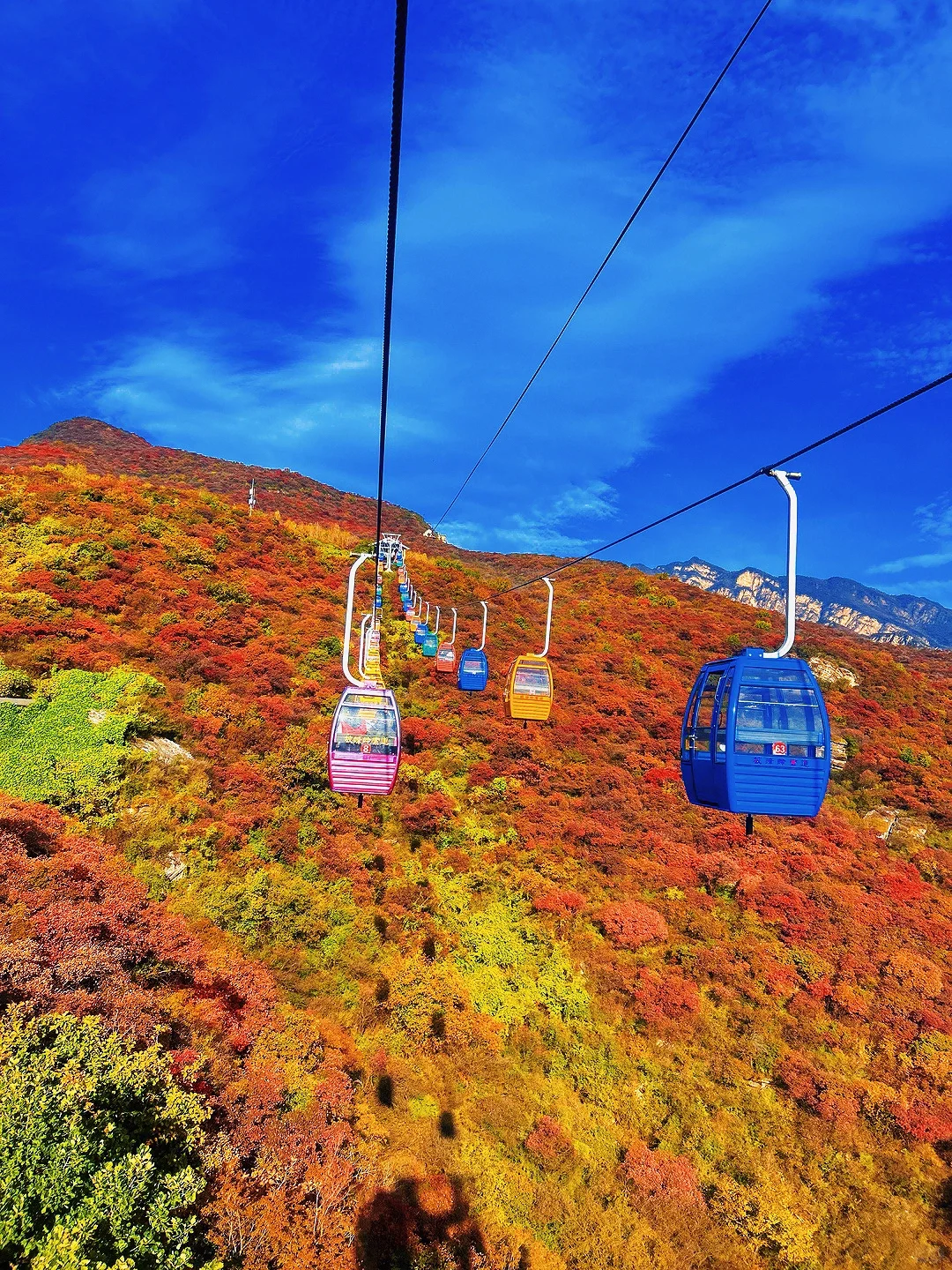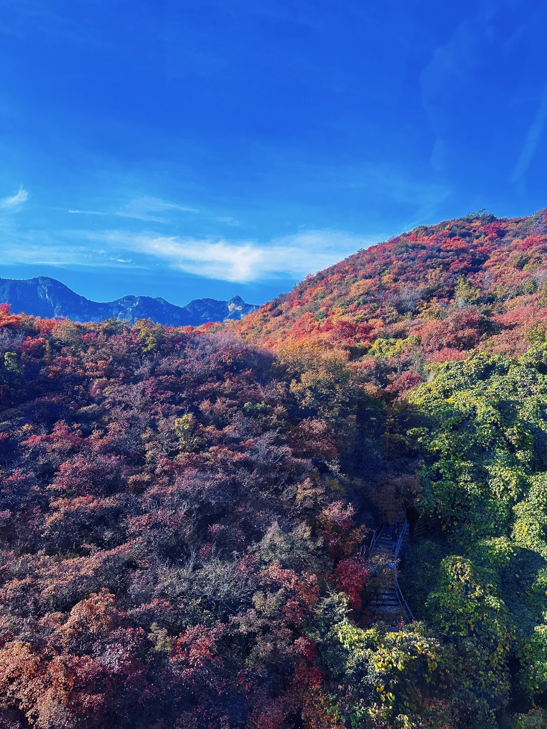 坡峰岭的红叶简直美如画🎨!每一片都像是大自然精心挑选的壁纸,蓝天映衬下,红叶更显娇艳欲滴😍😍。走在石阶上,仿佛能听到红叶在和秋风窃窃私语,诉说着秋天的童话🍁🍁。
