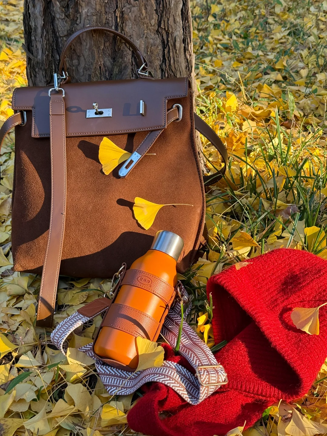 ▪️北京降温了,出门一定多穿衣服,还好我背了保温瓶,可以随时随地喝到热水,我背的这个是「思乐得」家的,瓶身黄色和秋天很应景🍁而且保温时间一整天,搭配的背带随身背拍照也好看,像个小装饰一样很出片💕