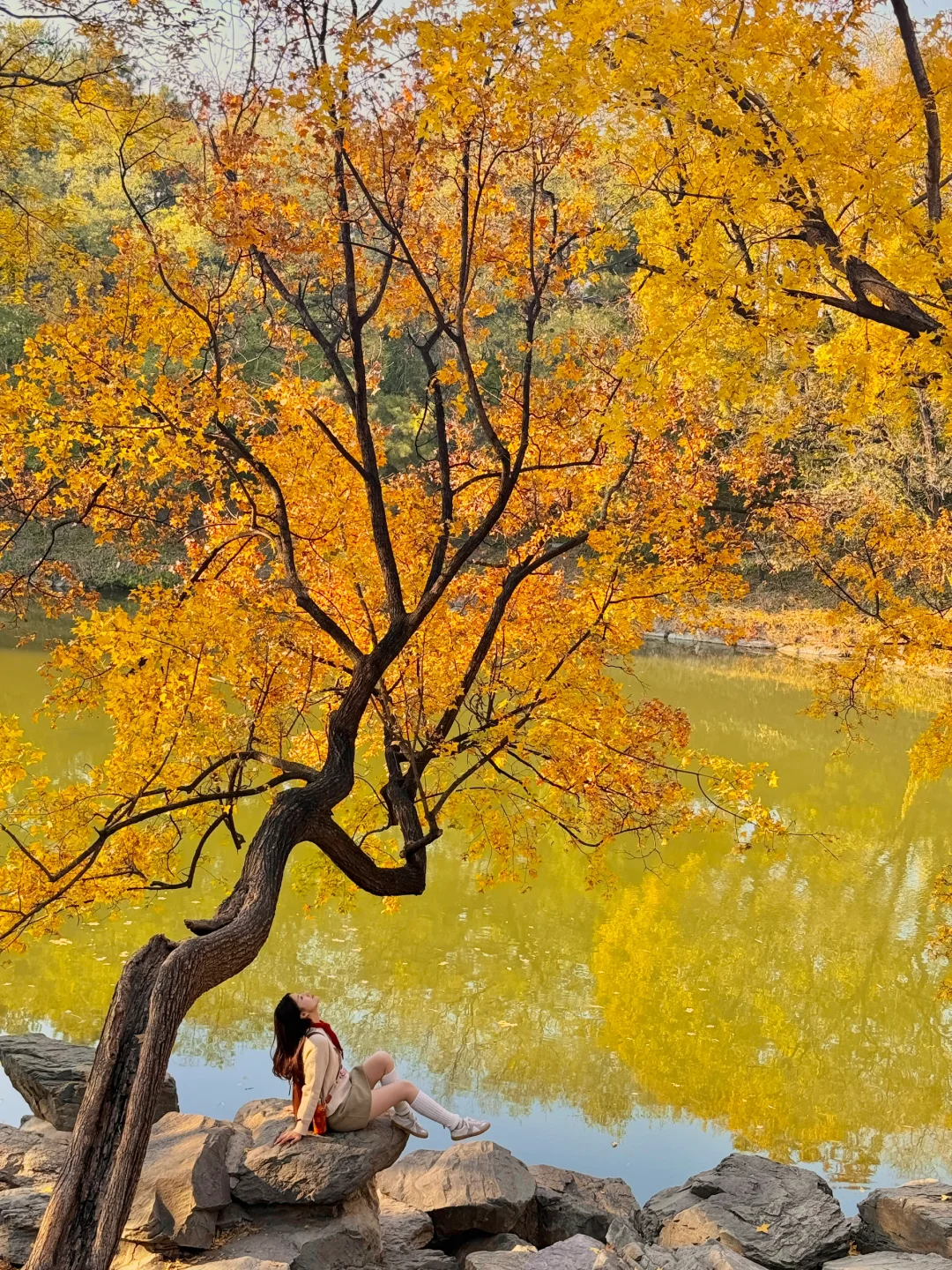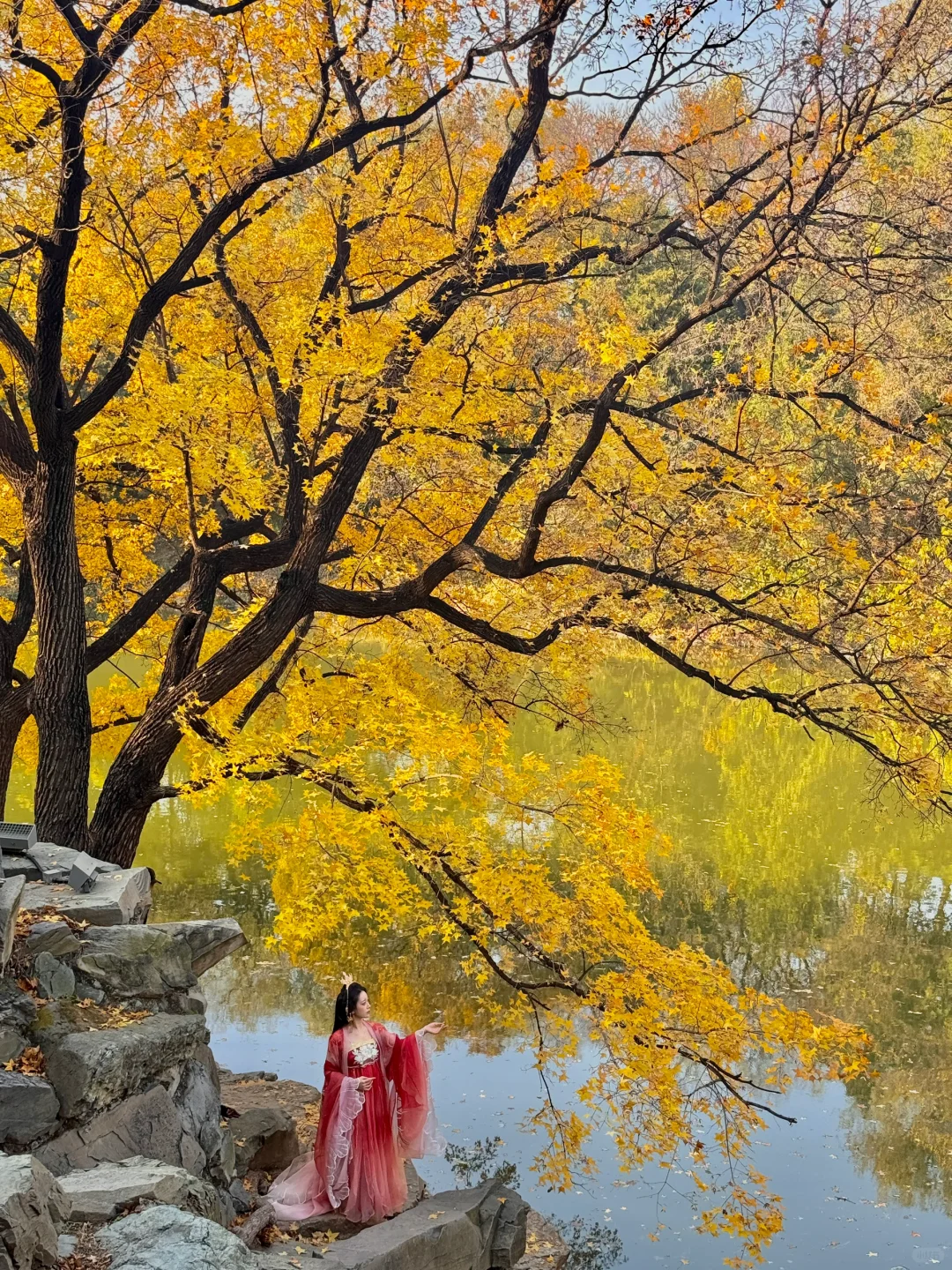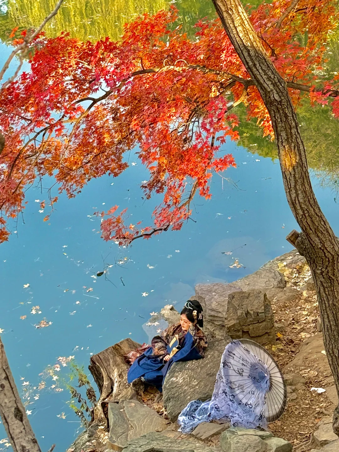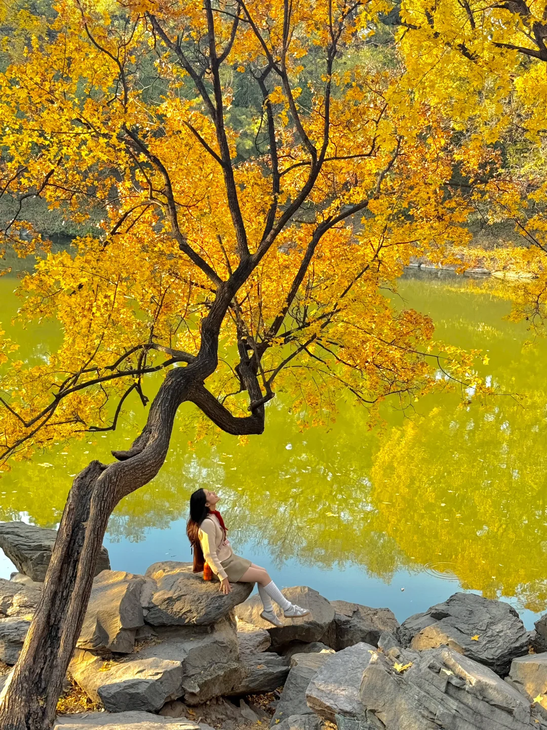 🈶一大棵倒在路中央的枫叶🍁超级震撼,这里忍很多,其次在后湖,可以在古建柱子为边框背景为枫叶🍁旁边的大石头也可以坐在上面拍被推下来的感觉!