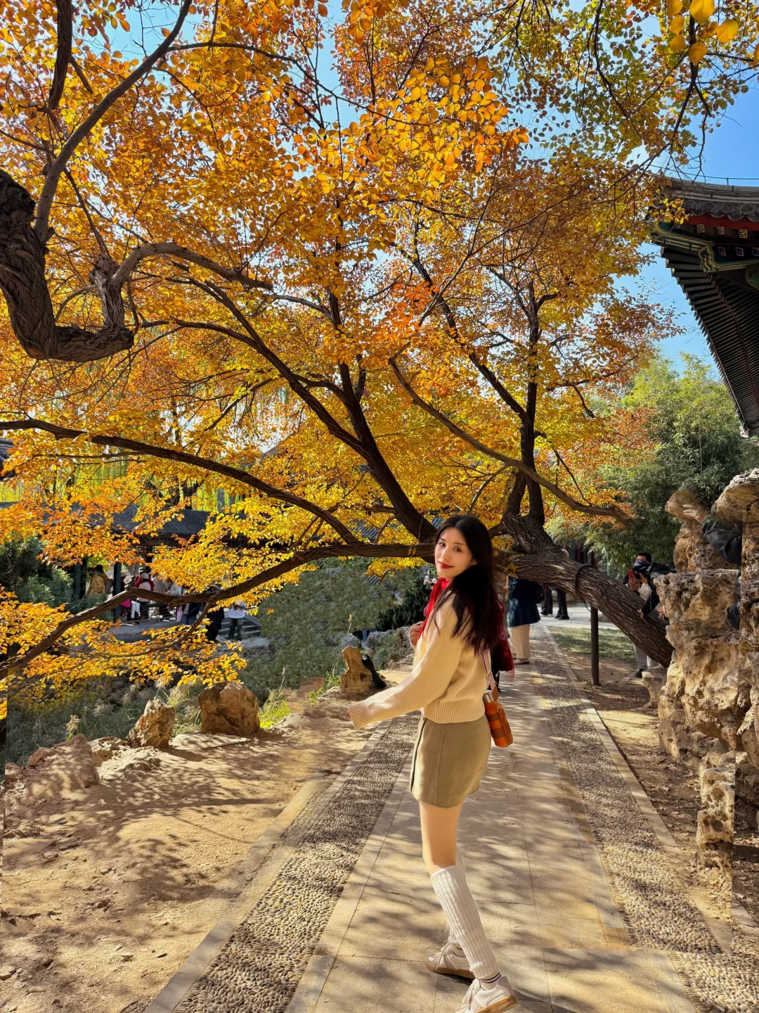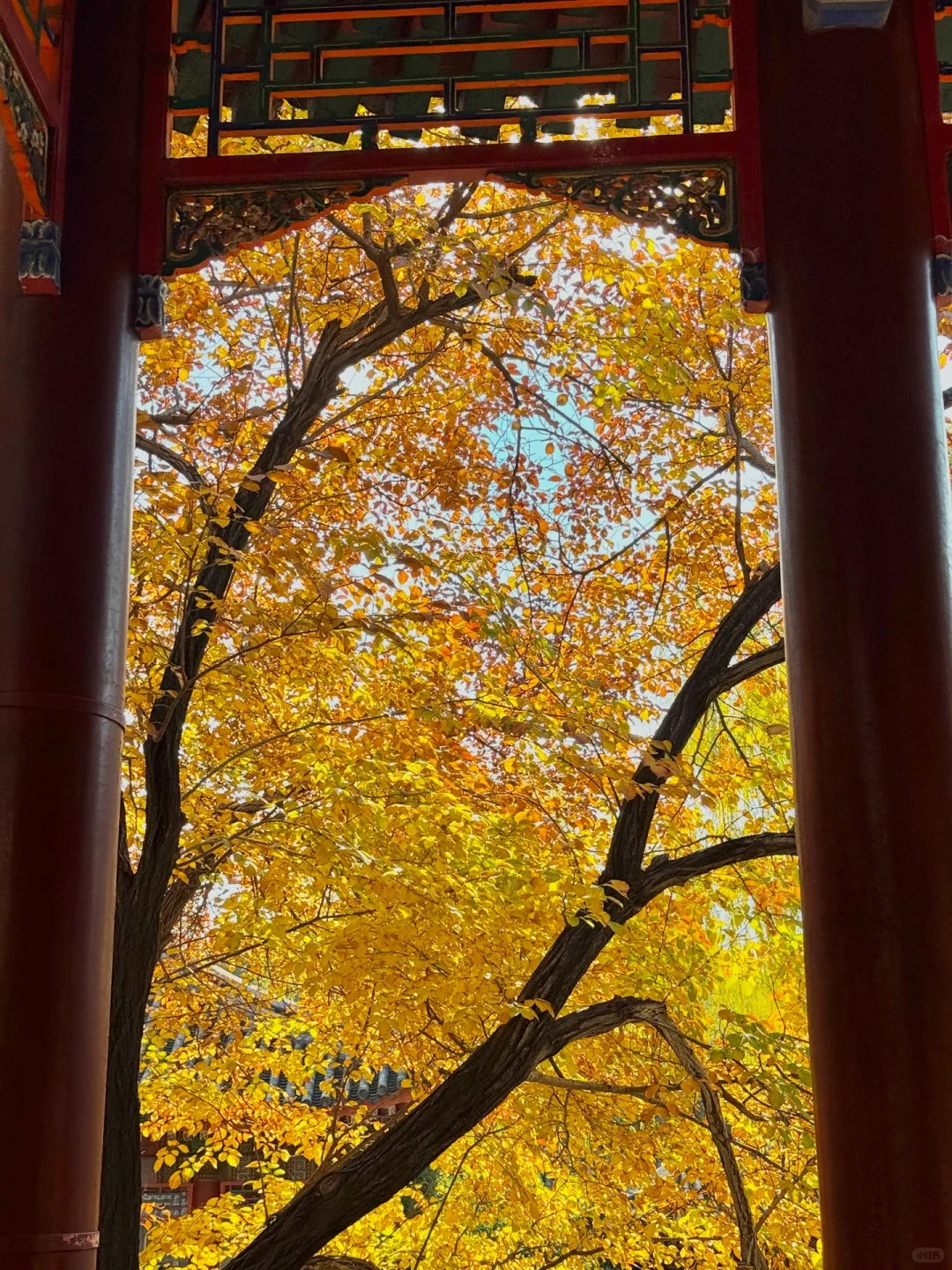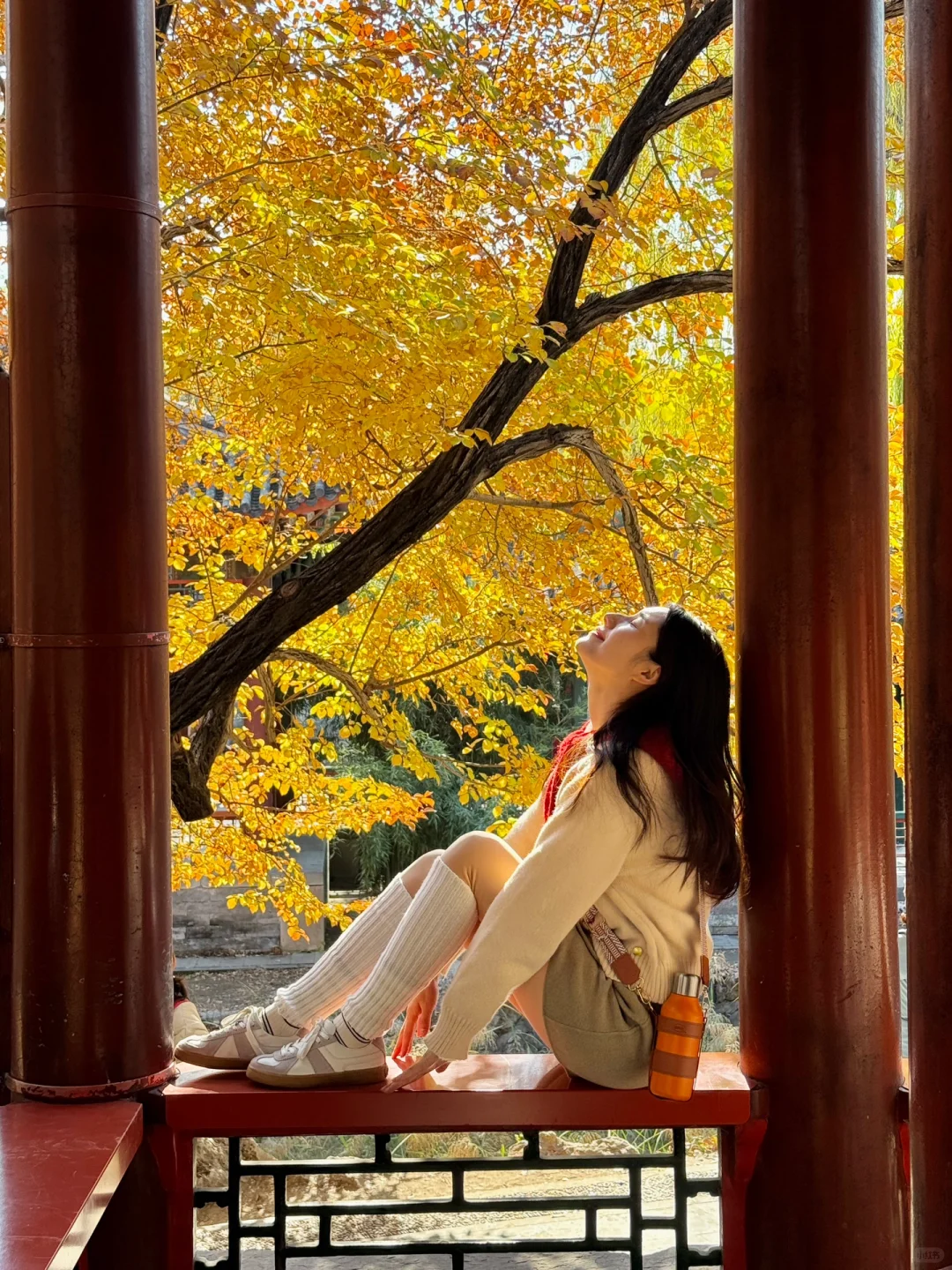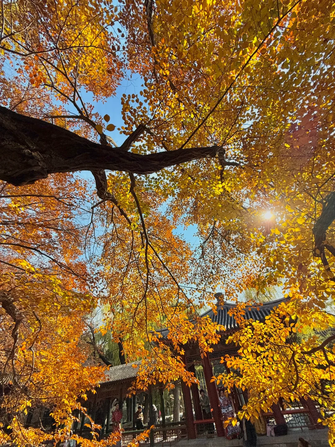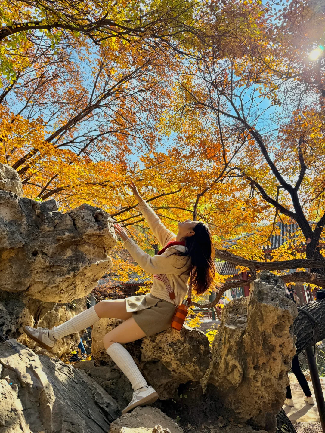 🈶一大棵倒在路中央的枫叶🍁超级震撼,这里忍很多,其次在后湖,可以在古建柱子为边框背景为枫叶🍁旁边的大石头也可以坐在上面拍被推下来的感觉!