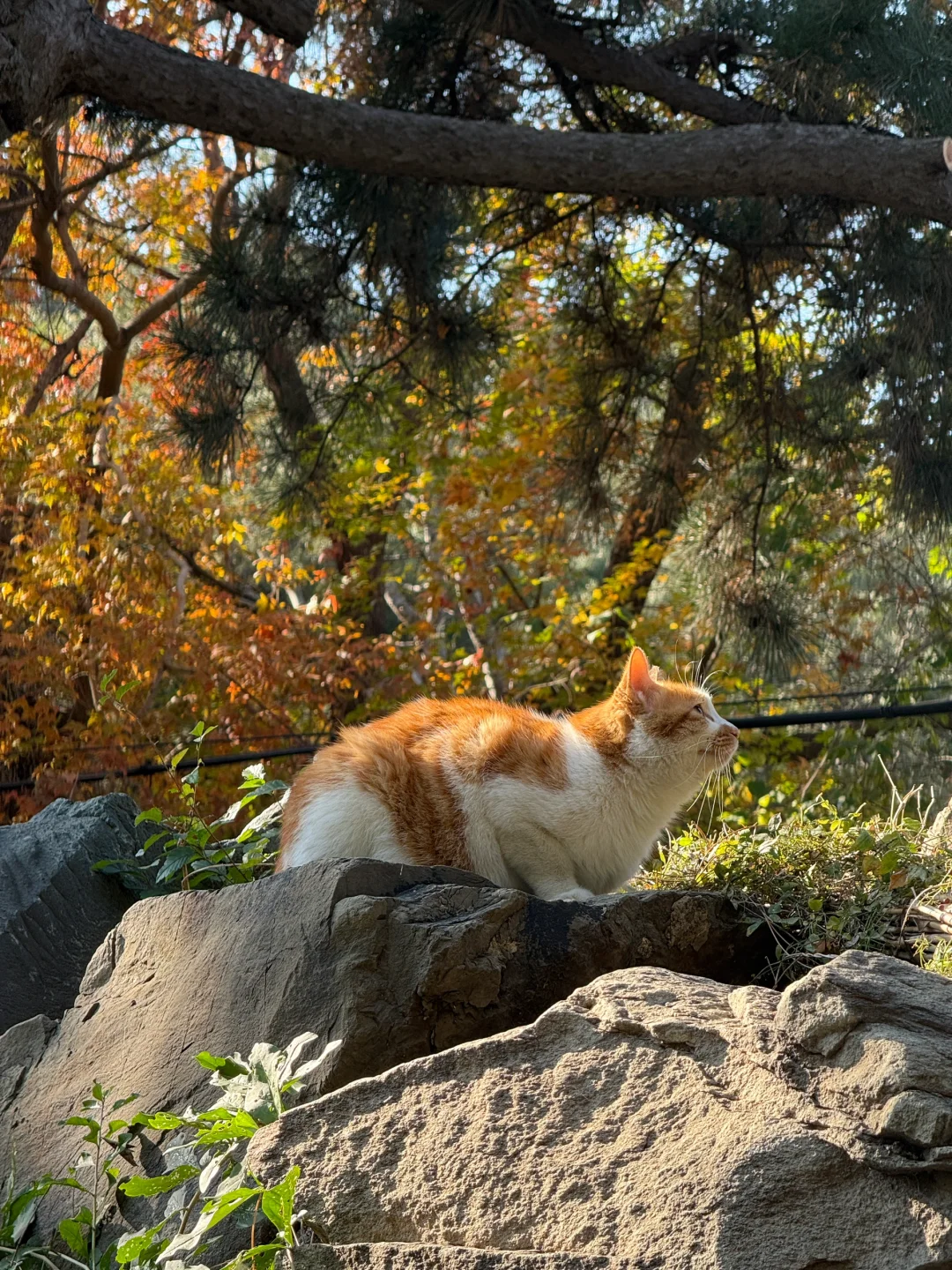 后山上拍到了小猫🐱有一大块石头也可以俯下拍黄叶🍂