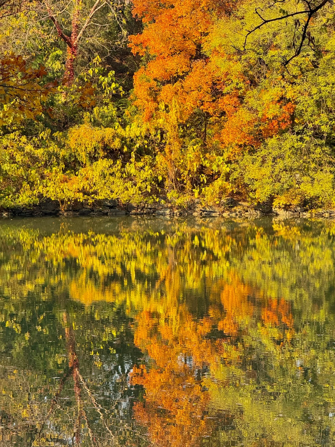 ❹前三个机位继续向西有一处大石头既亲水又亲秋叶也很好拍📷