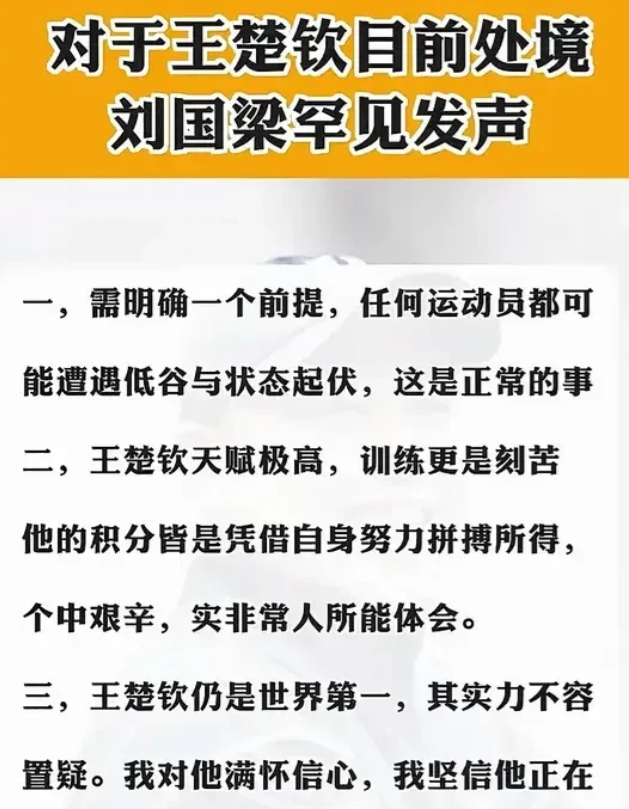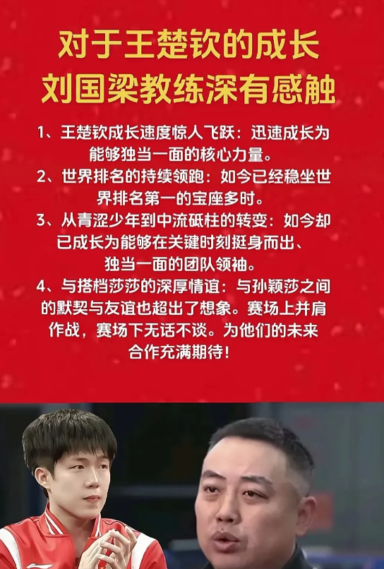 让我们共同期待刘国梁能够成为王楚钦的救赎者,引领他走出这段艰难的时期。同时,也期待王楚钦能够不负众望,用更加出色的表现回报刘国梁和所有支持他的人。在未来的赛场上,让我们共同见证王楚钦的华丽蜕变!