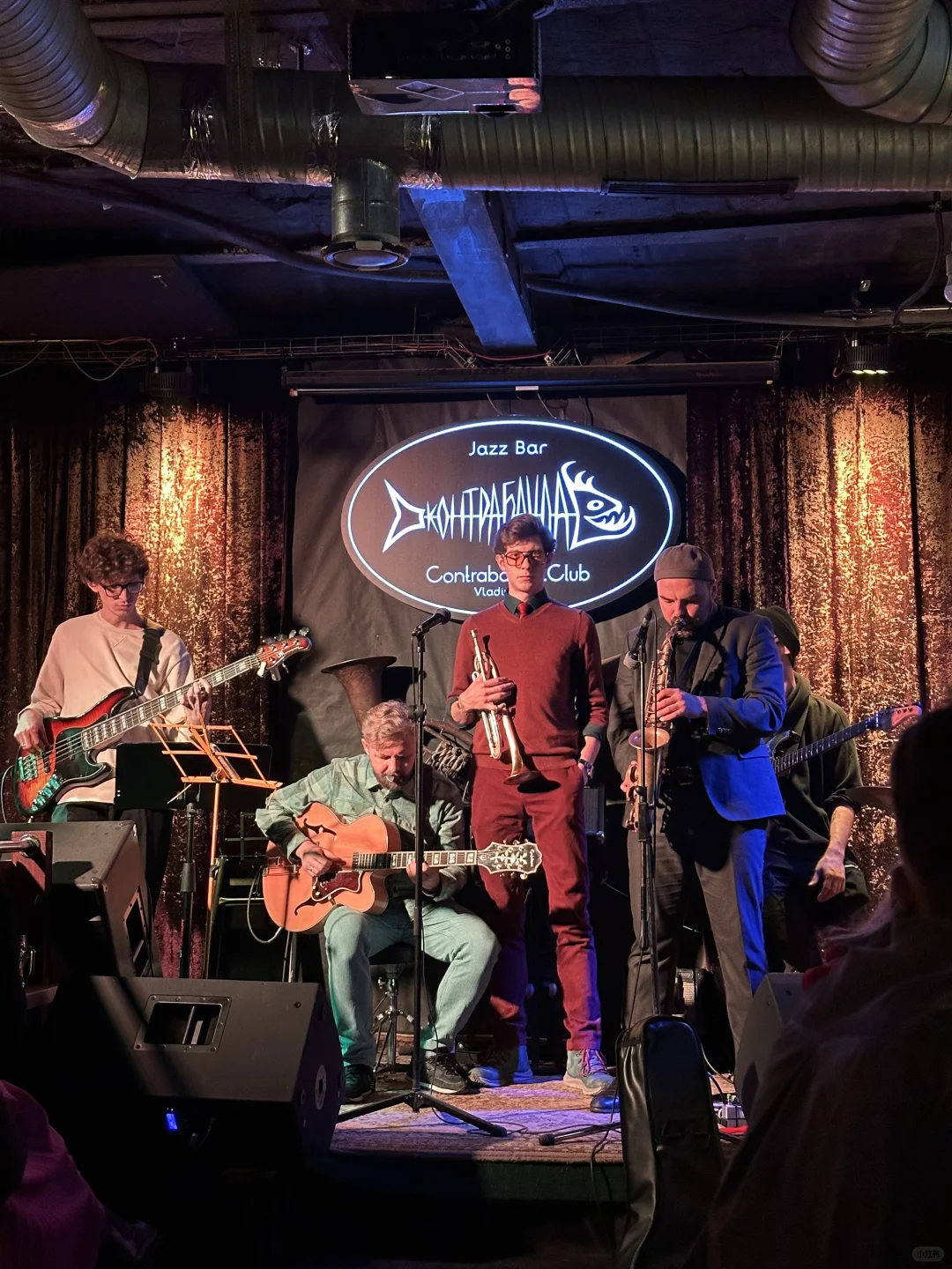 超帅的🎺的俄罗斯帅哥 超级飒美的女调酒师🍸 800卢布门票 可以换一杯660🥃的酒 换算大概60r 表演+调酒 晚上十点左右有表演 大概十二点左右结束 空间不大,位置很少 营业时间:下午七点-凌晨四点