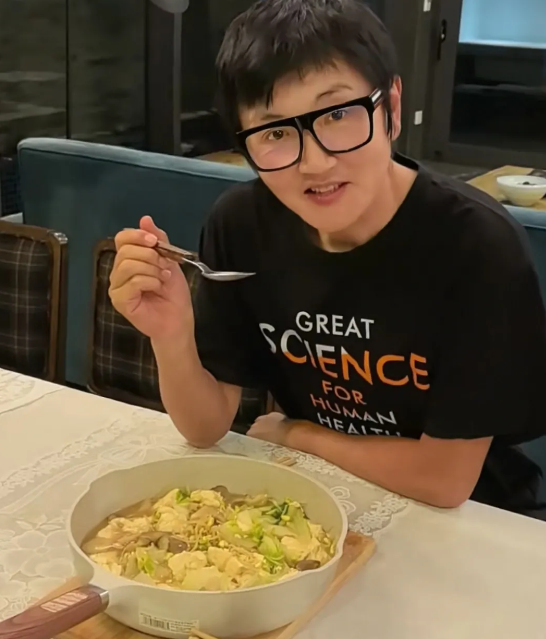 再瞅瞅他戴着大黑框眼镜,这眼镜一衬,脸显得更小了。从这晚餐和他的状态能看出来,孙楠对自己的身材管理那是相当自律啊!一般人可真没他这毅力,为了保持身材,在吃的方面这么克制,真的是不容易呢。