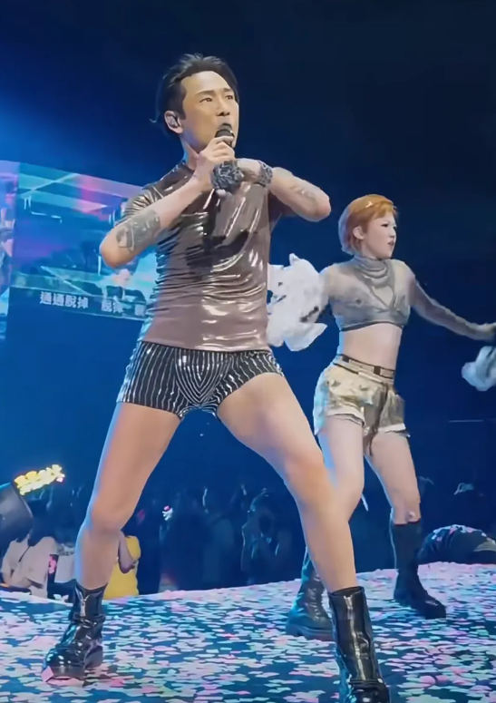 妈呀!你们快来看看这是谁呀?就这么穿着个短裤就大摇大摆地上台了。这可不是一般的场合,这可是演唱会啊!先不说台下乌泱泱的观众了,这可是现场直播呢,那全中国得有多少双眼睛在瞅着呢!