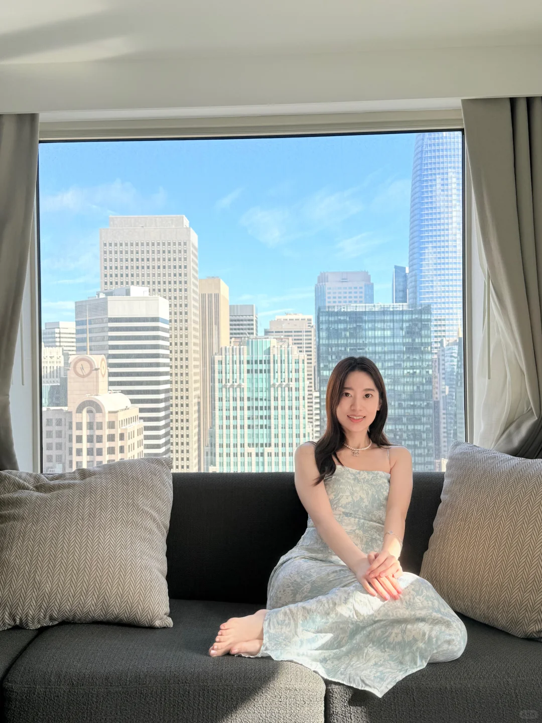 👗最近新买的reformation小裙子好喜欢。reformation 淡淡的蓝色,还有一点缎面的感觉,阳光下微微反光。适合稍微正式点的场合,但又不那么正式,穿着参加朋友婚礼的晚餐。就是有一点点容易皱🤏。不过还是很喜欢这个裙裙。[皱眉R]