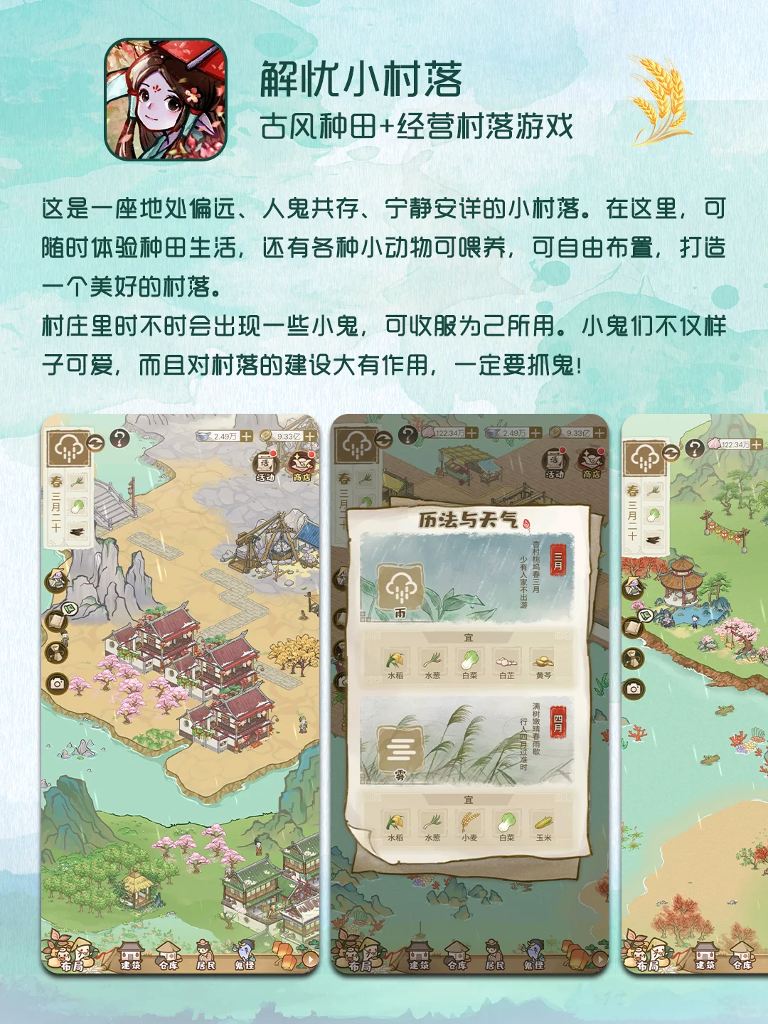 白天是卑微打工人,晚上觉醒中国宝宝的种田基因[偷笑R] 古风、童话、修仙……不同风格的种田游戏~一玩就停不下来[哇R][哇R][哇R] [露营灯R]东方:平野孤鸿 模拟城建+经营策略游戏 [露营灯R]解忧小村落——古风种田+经营村落游戏 [露营灯R]寓言之地 (Fabledom)——童话风城镇建造游戏 [露营灯R]桃源记——国风探索经营策略生存手游 [露营灯R]仙山小农——修仙种田模拟经营手游 [露营灯R]这城有良田——国风经营游戏 //心中有桃园 偷得浮生半日闲//[萌萌哒R]