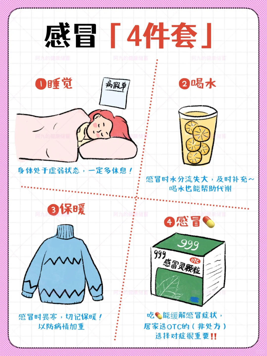 感冒了,身体不舒服,因为免疫系统开始工作,这时“感冒的四件套”要做好~