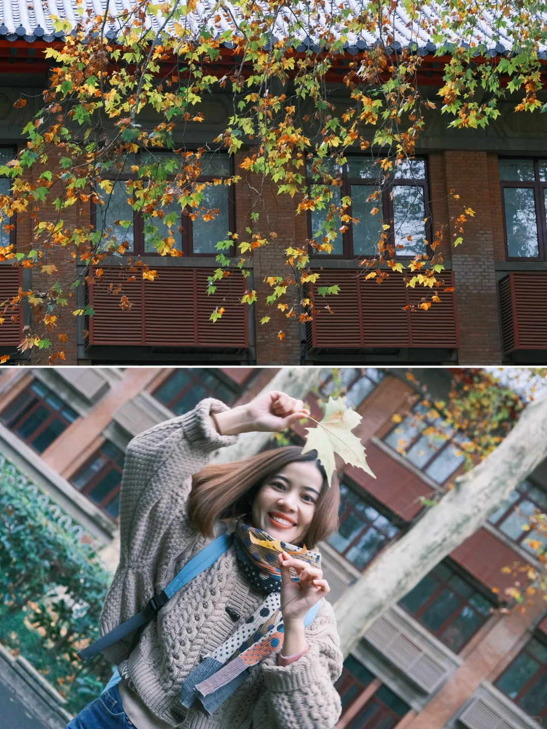 大街小巷上密集的梧桐树、枫树、银杏树......几乎是一夜之间被染成了金黄、橙红与红褐色。