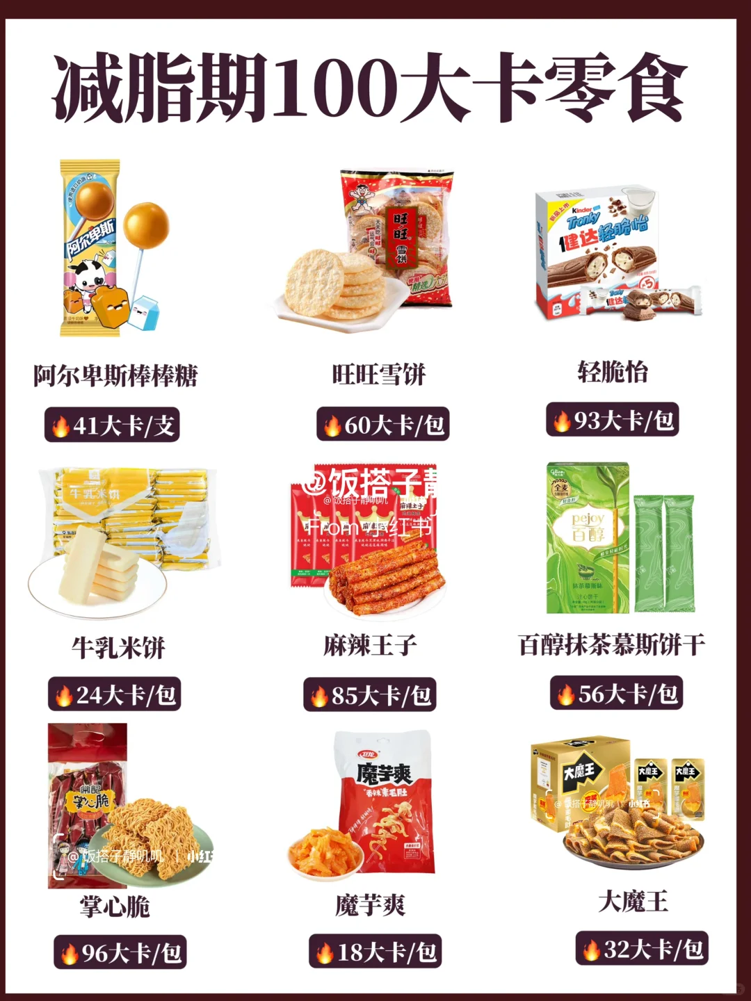 以上是根据我半年来吃过的零食,热量在100大卡以内的集合,姐妹们都给我狠狠码住了,争取摄不过量!