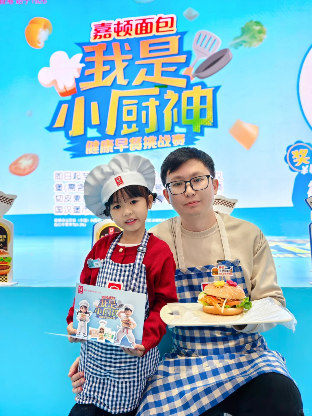💡在规定的时间内,和孩子一起制作一份DIY汉堡,由主办方及🌟厨选出🏅️作品,就可以Get✔️嘉顿定制小厨神铭牌1⃣️份,比赛合影纪念照及相框1⃣️份,扭蛋机抽🎁1⃣️次!