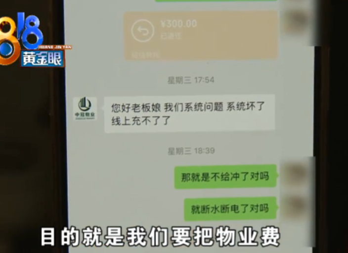 11月27日,浙江杭州,一女子在一小区有9套房子,然而住进去小区后不久,每一套都发生墙皮开裂、漏水现象,开发商、物业先后作出承诺帮忙解决,可后来对方迟迟未能妥善解决此问题,女子一气之下拒缴每套每年3000多元物业费,没想到,物业竟然限制水电,让女子无法线上充值,想要用水用电只能去线下,一次还只能充值5元……