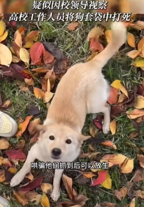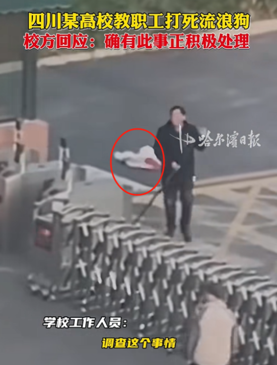 四川绵阳,某高校职工将流浪狗装进袋子里抱摔、敲打,流浪狗发出一阵惨叫后一动不动了,学生气愤不已,将这段视频发到网上曝光。