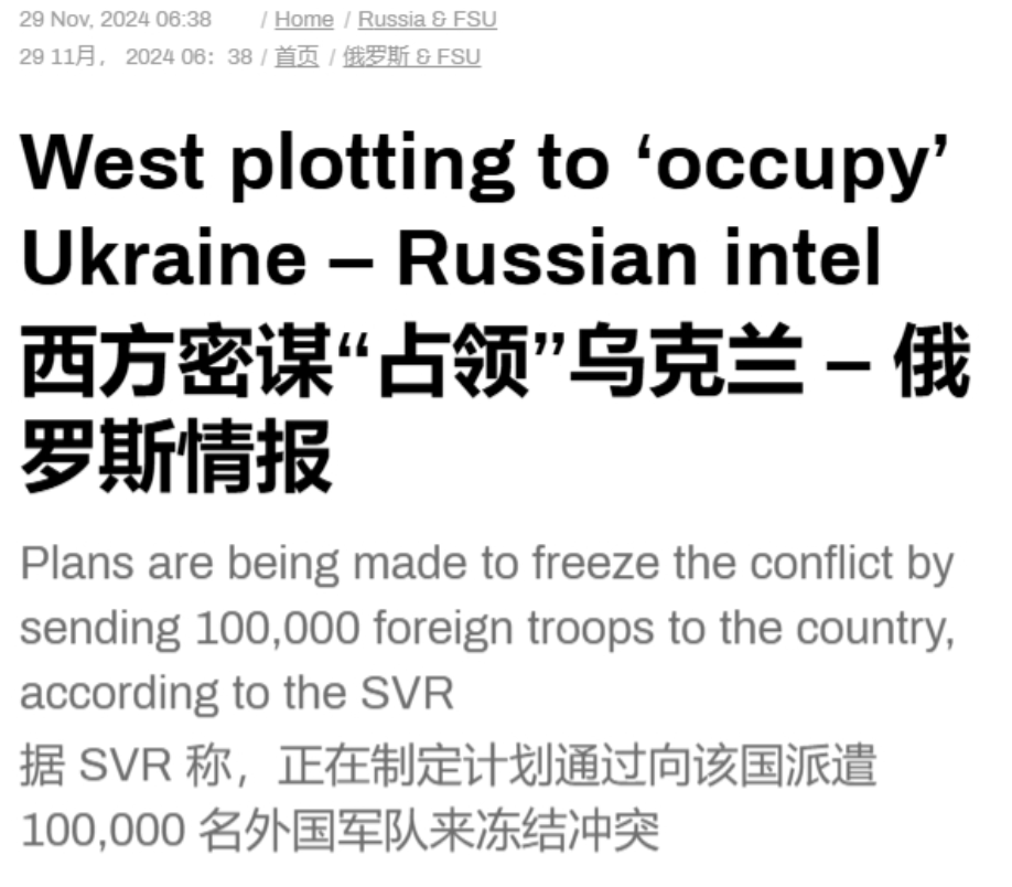 俄乌冲突还没结束,西方已经准备好瓜分乌克兰? 29日俄罗斯对外情报局爆料称,