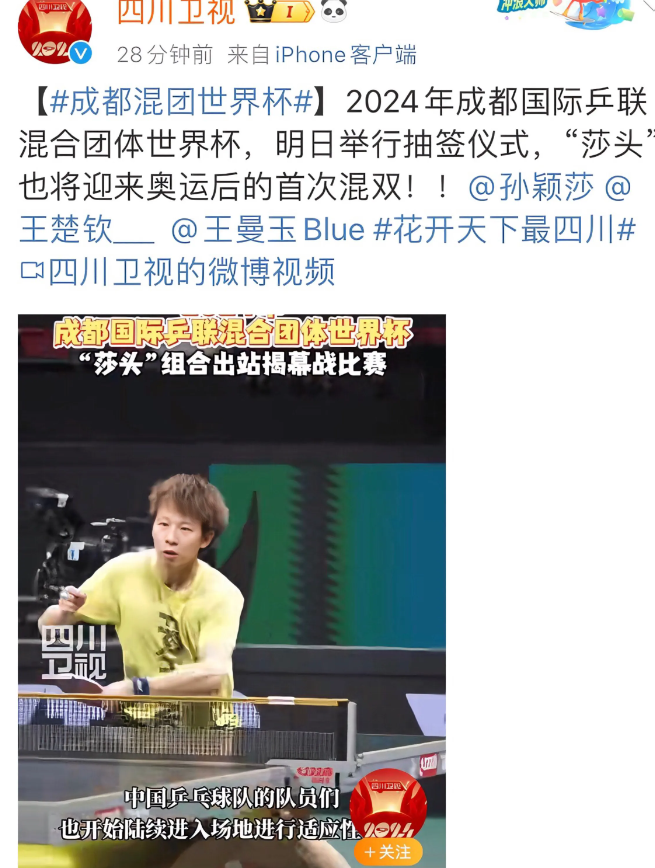 1、某卫视权威发布,孙颖莎与王楚钦这对混双搭档,将在奥运之后的首次合体,亮相成都混团世界杯的揭幕之战。此消息一出,令人瞠目结舌。