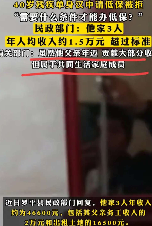 宋浩(化名),一位40岁的男性,身高仅1.4米,因身体残疾无法工作,完全依赖年迈的父母维持生计。近日,他申请低保却遭遇拒绝,原因竟是家庭人均收入略高于低保标准,这一事件引发了社会广泛关注。