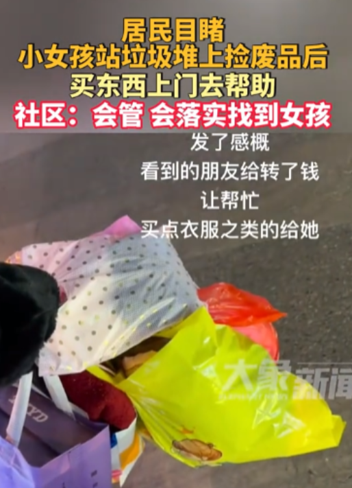 [撒花]太心酸了,云南,一女子看到一小女孩站在肮脏的垃圾车上翻找废品,一点点的将塑料瓶放到编织袋里,女子接下来的举动令人感动! 都说穷人家的孩子早当家,云南这个小女孩太令人心疼了,这么小的年纪就会帮自己的爷爷奶奶去捡废品卖钱了,明明这个年纪的小孩应该无忧无虑的玩闹的,但是她却为了生计而奔波,捡完废品之后,还要趴在床上写作业,让人看了心疼。 女子跟女孩的奶奶聊了聊,还给女孩买了不少的衣服还有好吃的,用自己有限的力量改善女孩的生活,当地社区知道这个情况之后,也会女孩进行了落实,对女孩的生活进行改善,女孩的生活也算是往好的方向发展了。 希望这个孩子能够在帮助下茁壮的成长,只有通过自己的努力才能真正的改变自己生活的处境。 消息来源:大象新闻官方账号,2024年12月1号发布——《12月1日(采访),云南昆明居民目睹小女孩站垃圾堆上捡废品后,买东西上门去帮助,社区:会管,会落实找到女孩》