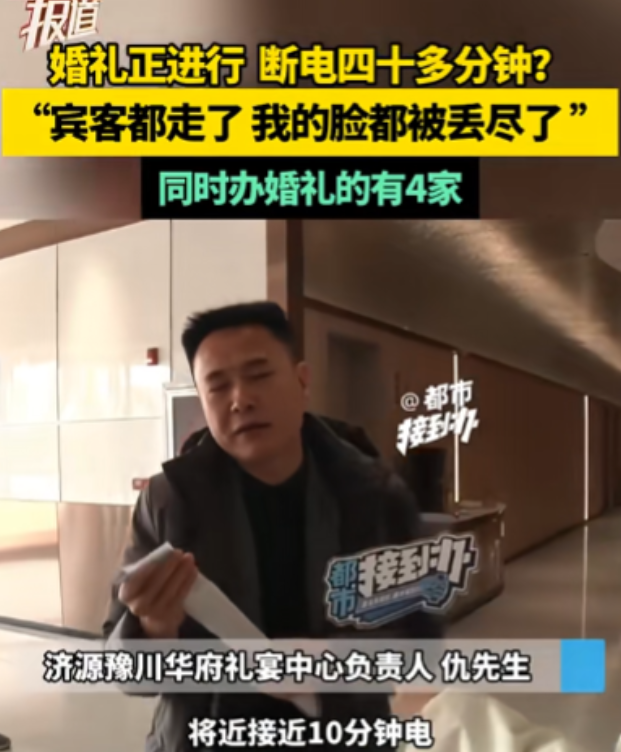 11月26日,河南济源,一男子大婚,给酒店交了19800的婚礼定金,没想到婚礼进行到一半突然停电四十分钟,菜还没上齐,宾客们陆陆续续走了,男子父母直接被气哭:“盼了20多年,脸都丢尽了!” 婚礼是人生中最神圣的时刻,每一对新人都希望这一天能够完美无瑕。然而,就在新人交换戒指的那一刻,酒店的灯光突然熄灭,原本喜庆的氛围被突如其来的黑暗所打破。 宾客们试图用手机照明,新人焦虑地等待着电力恢复,而酒店工作人员只是说:“请大家耐心等待,我们正在查明原因,很快就会恢复电力。” 随着时间的推移,宾客们的耐心逐渐被消耗殆尽,他们开始陆陆续续离开,新人父母的心情从最初的愤怒,到后来的无奈,再到求助媒体的绝望。 酒店方对于这场突如其来的停电似乎并没有准备,他们未能提供合理的解决方案,只是一味地承诺会尽快恢复电力。但随着时间的推移,这种承诺变得越来越苍白无力。 媒体报道后,这一事件引起了社会的广泛关注。 记者在现场了解到,当天有四家婚礼受到了影响。酒店方在面对媒体时,声称停电仅持续了10分钟,但新人父母提供的证据却显示停电时间长达四十分钟。 酒店方对此证据予以否认,声称是虚假的。这一回应引起了新人父母的强烈质疑,他们认为酒店方在逃避责任。 法律专家对此事进行了评论,他们认为酒店方可能面临法律责任,新人也有权采取法律行动。与此同时,这一事件也引发了对酒店服务业的信任危机,以及对婚礼文化的影响。人们开始反思,对于这样的大型活动,酒店是否应该有更好的应急准备和处理机制。 在这场风波中,新人一家准备联系相关部门协调处理,希望能够获得合理的补偿。他们希望通过法律途径,为自己讨回一个公道。 这场婚礼停电事件,不仅仅是一个家庭的悲剧,更是整个社会和行业的警钟。它提醒我们,无论是在服务业还是在我们的日常生活中,应急准备的重要性不容忽视。只有这样,我们才能在面对突如其来的困难时,保持冷静,妥善应对。