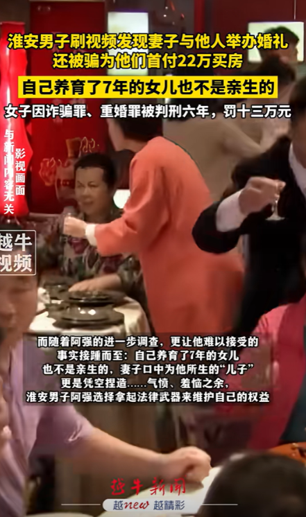 江苏淮安,男子和小11岁的妻子长期异地,儿女都是他在外地时出生,为了弥补妻子,男子给妻子转51万余元,不料却刷到妻子和别人办婚礼的视频,男子调查后才发现女儿不是自己的,儿子是捏造的,他们的婚房都有自己出资的22万!男子报警了!