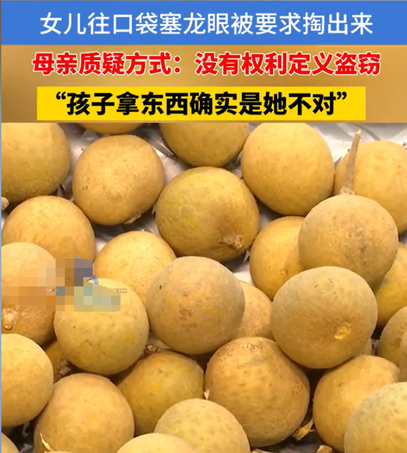 (信息来源:1818黄金眼 2024年12月3日 《女儿兜里有龙眼,妈妈质疑超市的做法》 )