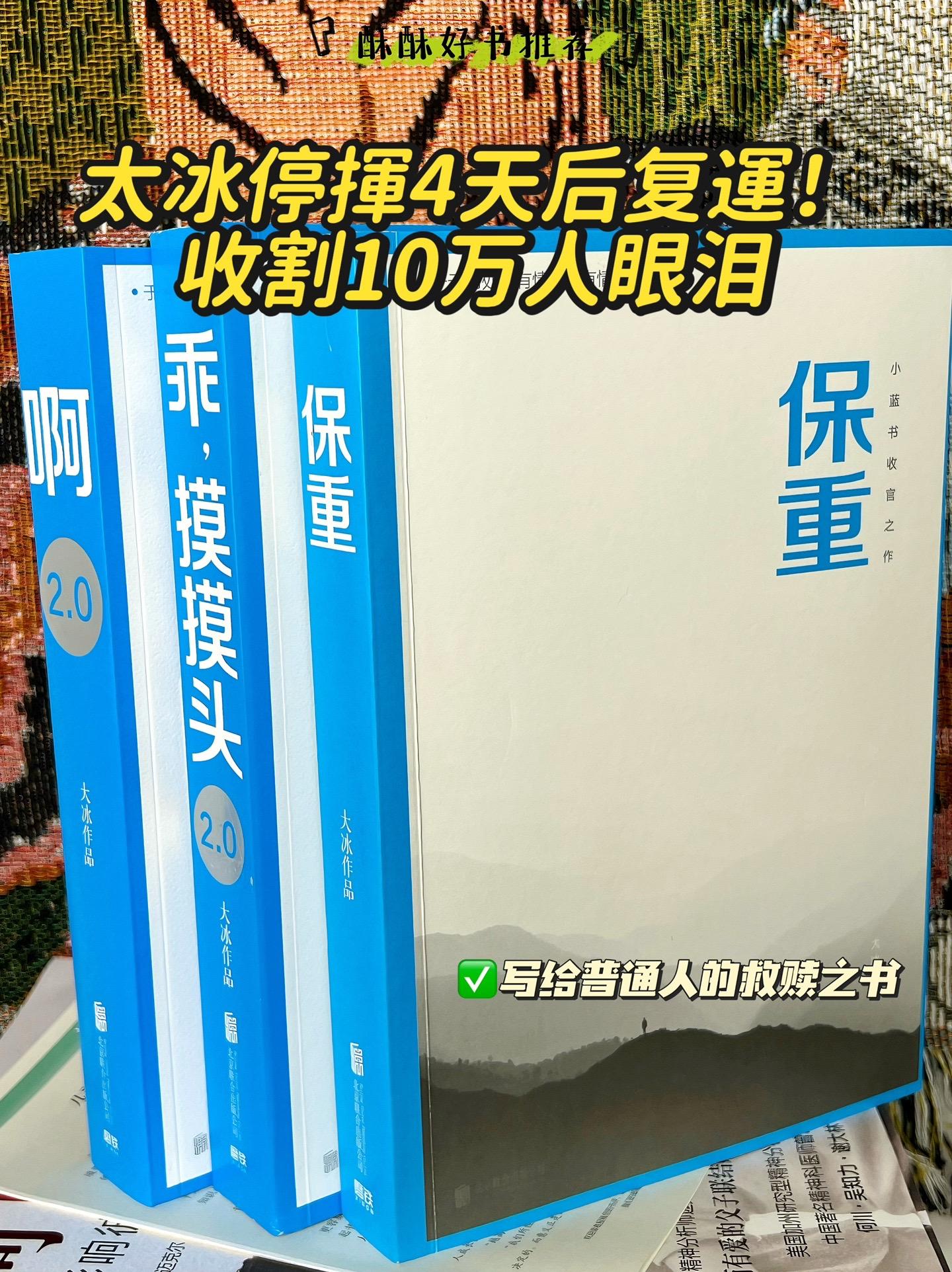 温暖且真诚,治愈到爆。终于理解为什么大冰老师直播那么火了,他的文字平淡温暖且真诚,治愈到爆,像一位老朋友娓娓道来.抚平了我所有的焦虑和内耗!你想从烦闷生活逃离一会儿,体验自由酒脱的人生,一定不能错过大冰的小蓝书系列,书里有山川湖海、有各色小人物,更有抚慰人心的江湖烟火气!