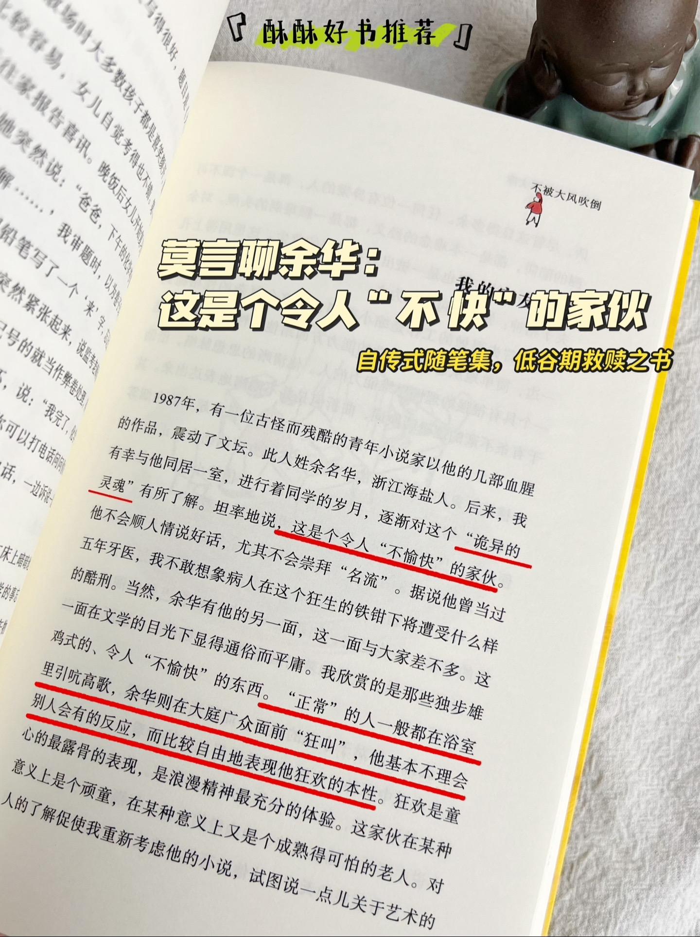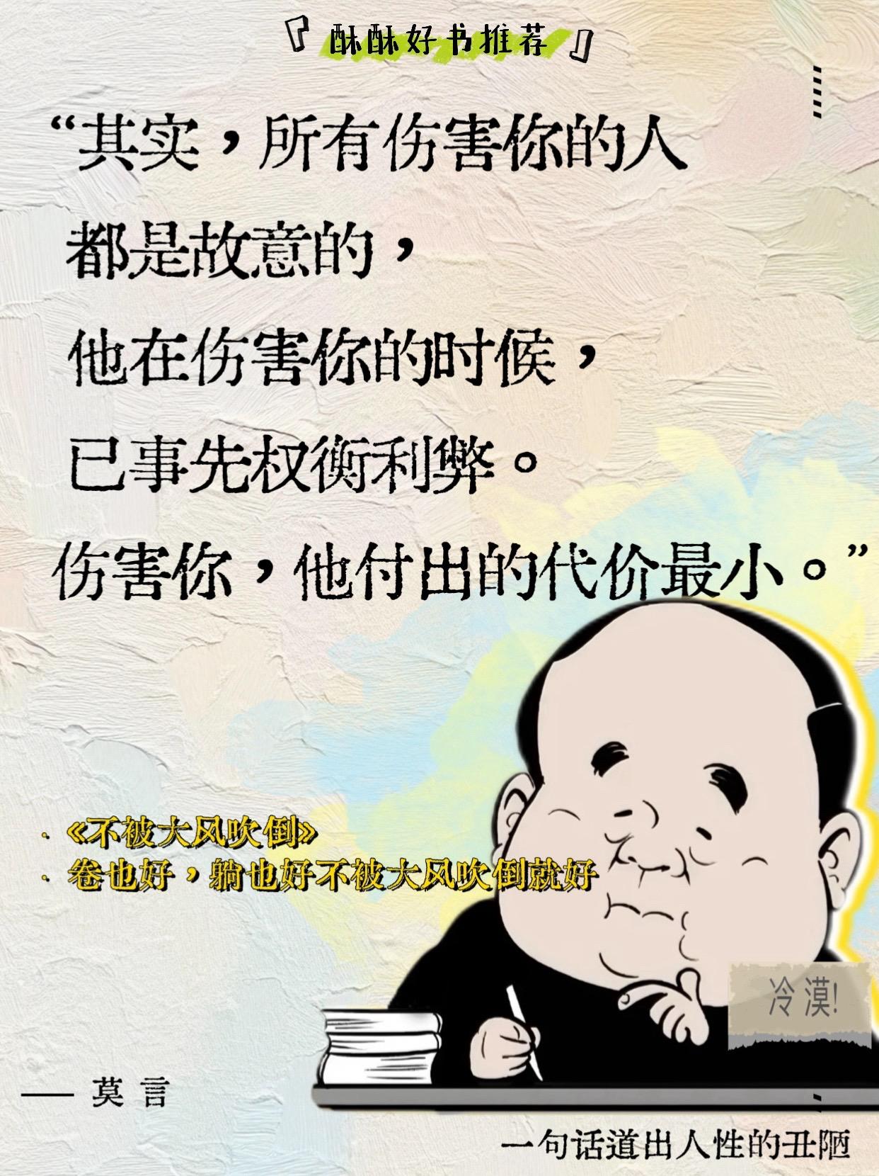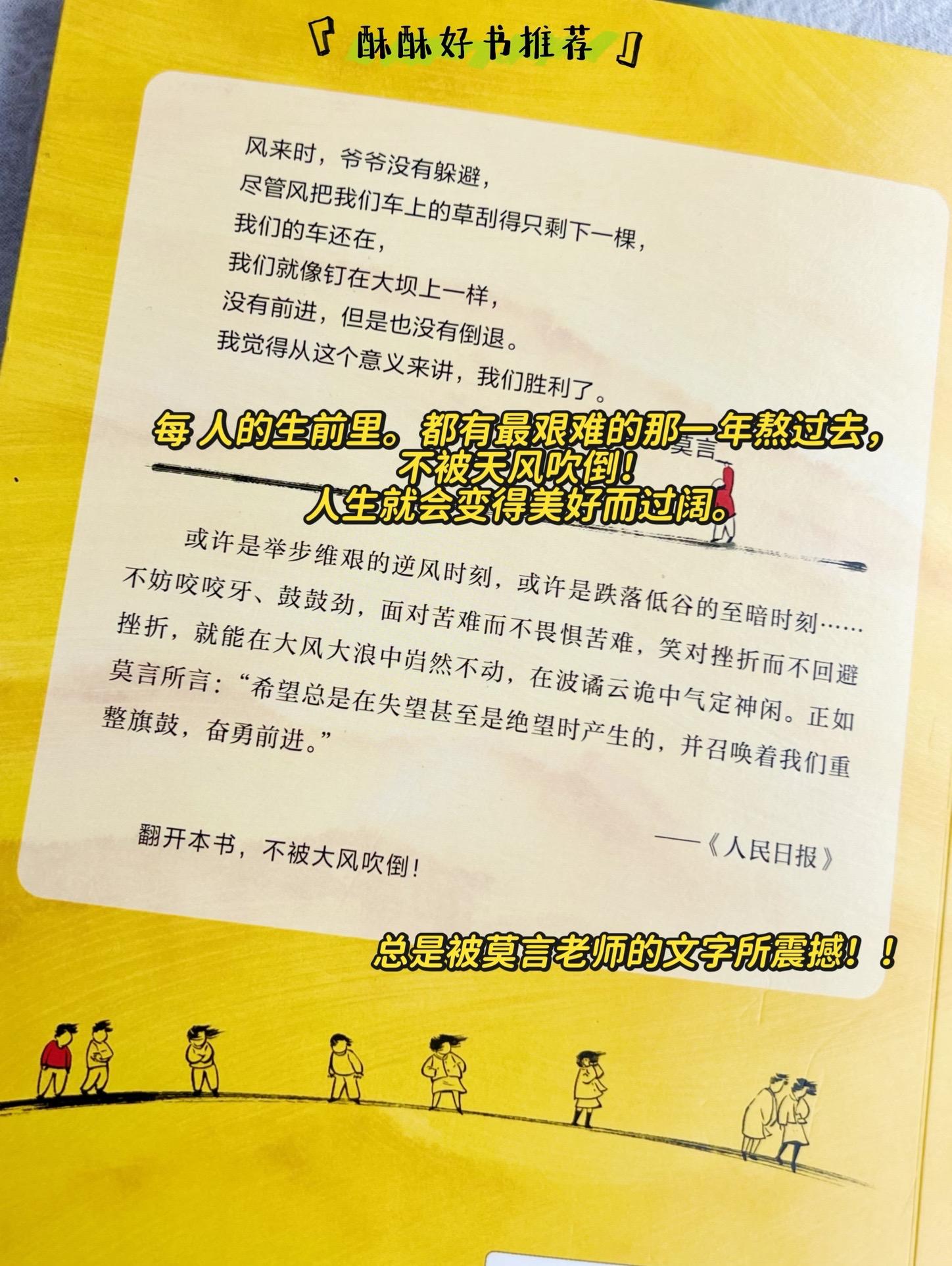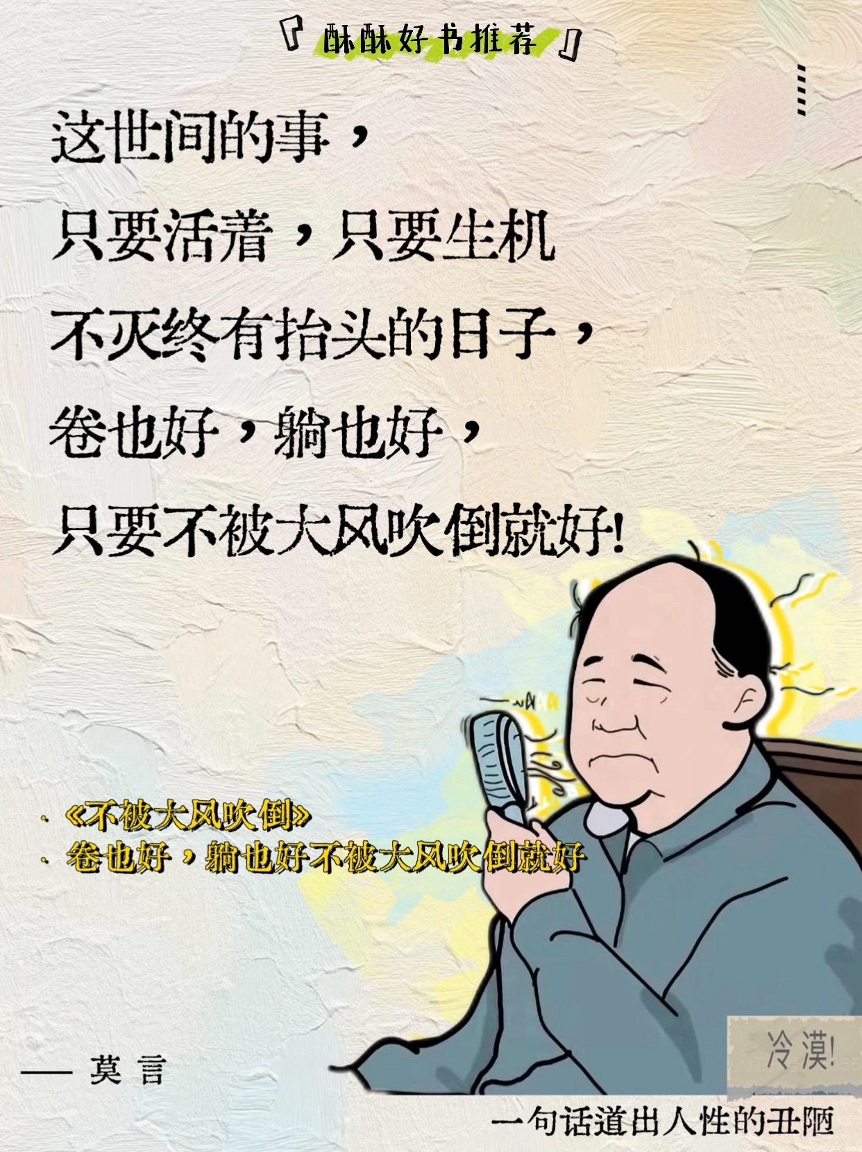 读完哭到泪崩!如果你正处在人生低谷,一定要读莫言的新书《不被大风吹倒》。他说“睡前原谅一切,醒来便是重生”,“卷也好、躺也好,不被大风吹倒就好。