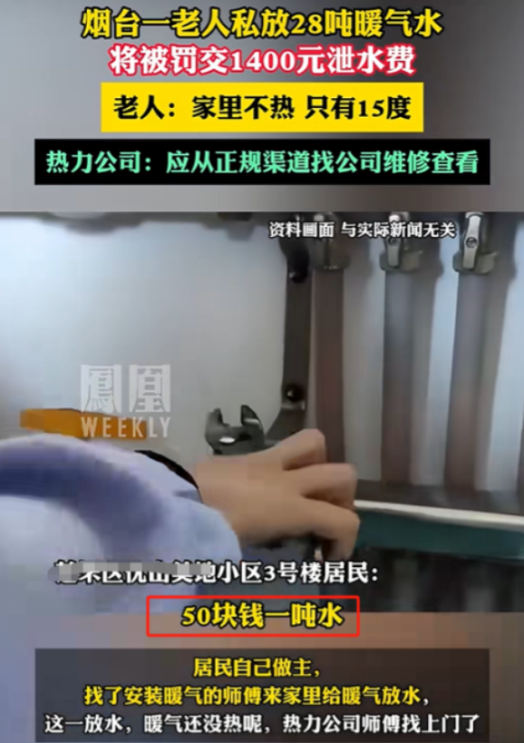 (信息来源:凤凰weekly2024年12月3日关于《烟台一老人私放28吨暖气水,将被罚交1400元泄水费》的报道)