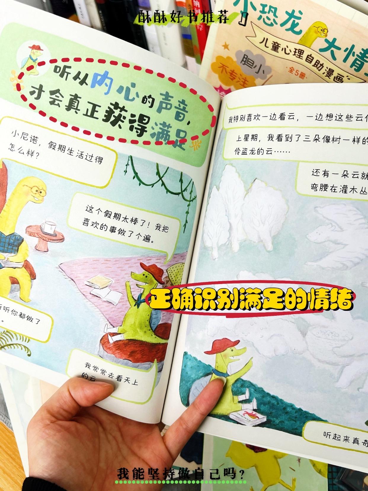 不要让孩子在性格养成黄金期,越错越远!!三岁后是孩子性格发展的关键黄金期。《小恐龙大情绪 儿童心理自助漫画》这套书共有 5 册,非常适合 2 至 6 岁的孩子。在书中,主角小恐龙就像我们身边的孩子,会害羞、会害怕、会胆怯退缩,遇到新环境会敏感不自信。不过别担心,书里提供了 10 个“正念练习”,比如感到无聊时可以试试“五部专心法”五感练习,兴奋过头时可以试试“星星开合跳”。这些方法能帮助孩子认识和管理自己的情绪,让孩子喜欢自己,变得自信且勇敢。