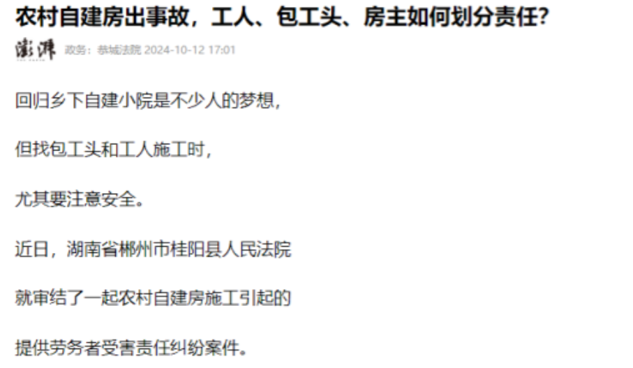 这一案件不仅凸显了农村建房中的潜在法律风险,也提醒了房主在选择承包人时需严格审查其资质,承包人则必须遵守安全规范,施工人员也应严格执行安全操作规程。此外,案件还强调了书面合同的重要性,明确约定各方的权责可以减少纠纷的发生。
