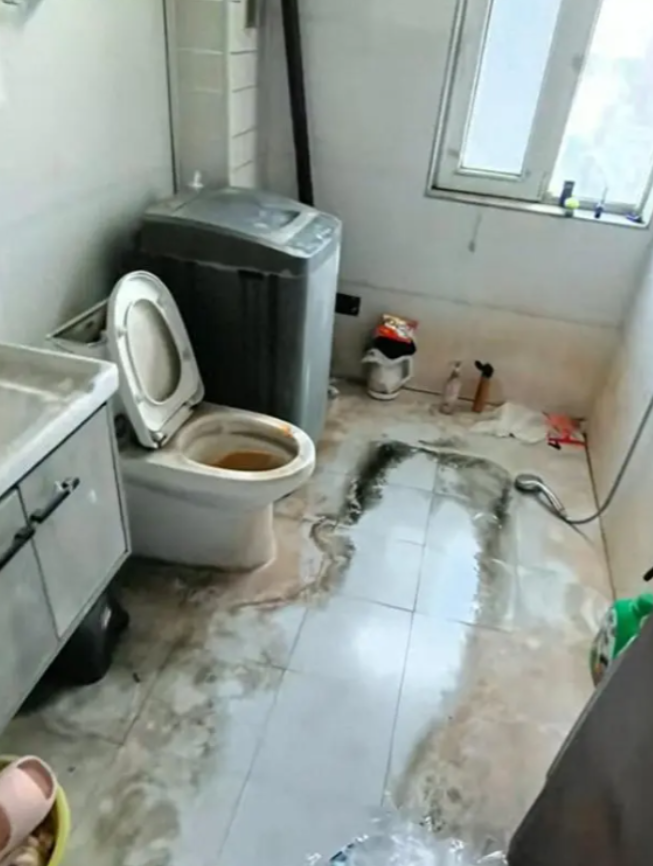 曾经温馨整洁的家,如今却变成了一个“垃圾场”。一股刺鼻的异味弥漫在空气中,屋里各个角落堆满了垃圾,墙根一侧散落着大量的一次性手套和头发。地板上留下两条明显的脚印,似乎从未被打扫过。马桶的颜色焦黄,污渍难以清洗。