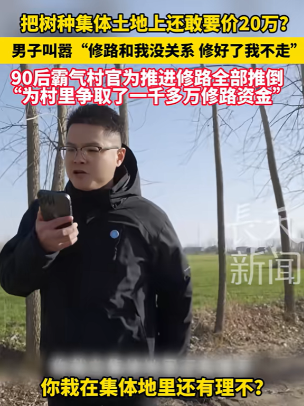 (信息来源:今视频长天新闻2024年12月3日《把树种集体土地上还敢要价20万?男子叫嚣“修路和我没有关系 修好了我不走”90后霸气村官为推进修路把树全推倒,“为村里争取一千多万修路基金”》)