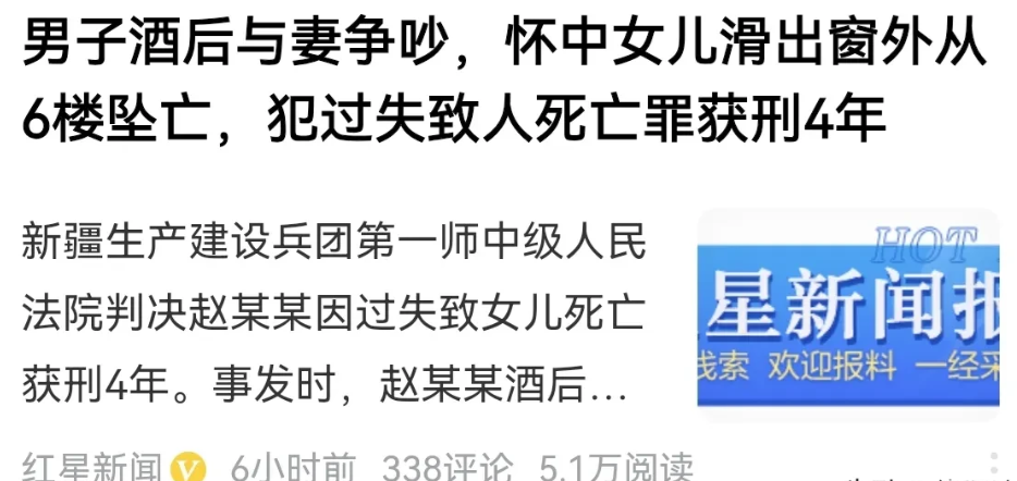 新疆,男子酒后抱着6个月大的女儿在窗口摇晃,一边跟妻子吵架,不料因情绪激动,转身时孩子从男子手中滑出窗外,从6楼坠下,陷入昏迷。男子将孩子送往医院抢救,经抢救无效死亡,医生报了警。检察机关以故意伤害罪对男子提起公诉,建议判处有期徒刑十年,可男子却认为自己没有伤害女儿的主观故意,属于过失致人死亡,法院判了。