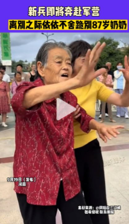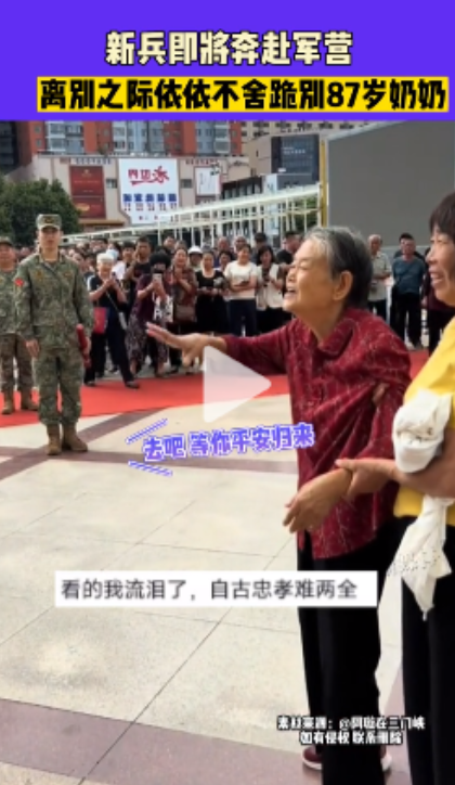 参考来源:河南广播电视台民生频道-9月19日(发布)河南,新兵即将奔赴军营,离别之际依依不舍跪别87岁奶奶