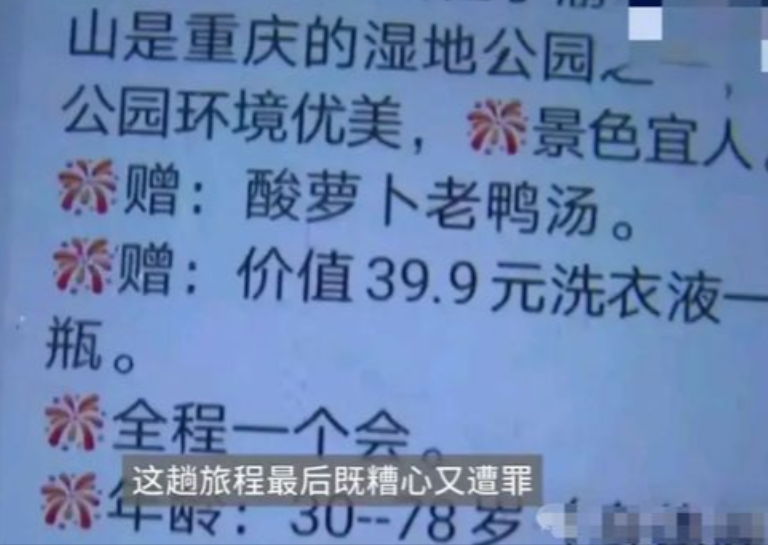 怎么想的?重庆,一大妈听说了一个9.9元的重庆一日游,还提供免费午餐。大妈觉得9.9元并不贵,再加上自己是本地人不会吃亏,于是高高兴兴报名了。谁知道当天,大妈还有其他50多名老人被旅游大巴拉去“听课”,免费午饭没吃到不说,还被扔在雨中好几个小时……