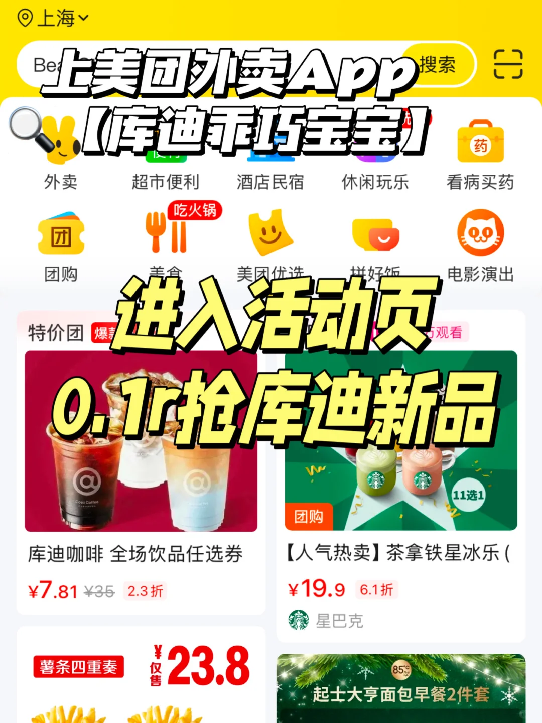 ✔️打开美团外卖 搜索库迪咖啡!!