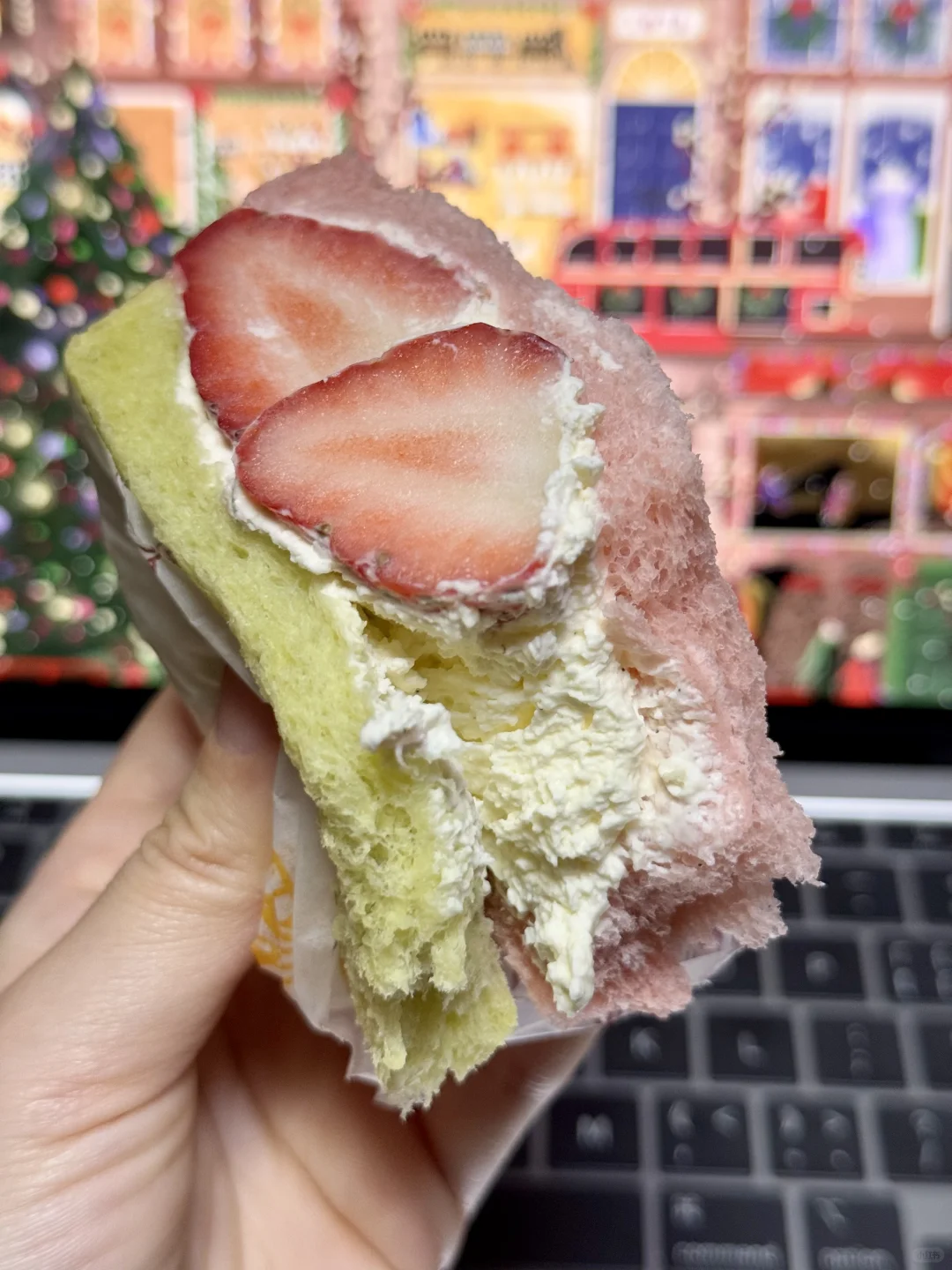 叮咚真的好懂冬天❄️ 草莓季就应该多出草莓新品! 草莓牛乳三明治又香又奶🍓 酸甜适中,果味超浓,一点都不腻! 刚好圣诞季,吃这个好应景🎄 求求叮咚,千万不要下架这款!!
