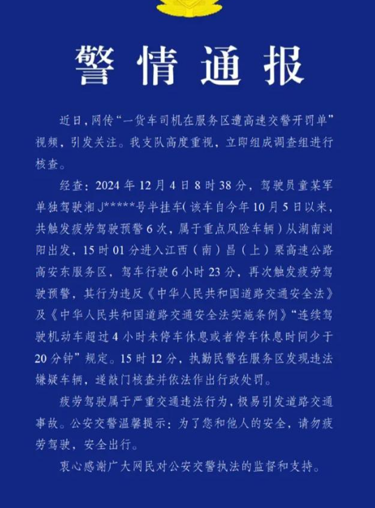 问这个问题的,一看就不是司机!至少没跑过高速,我还没见过跑4小时都遇不到服务区的情况,正常情况下,高速上服务区的间隔半小时内绝对跑的到,4个小时歇二十分钟,既是规定也是提醒,不是说到了四个小时就必须停,你只要四个半小时之内到达服务区休息,交警一般都不会管的,而通报中这个是多次触发了疲劳驾驶预警,且最近的一次是连续开车六个小时。这个罚款不冤枉!