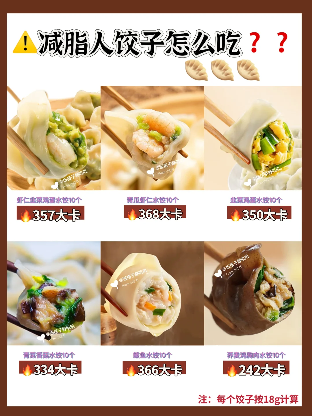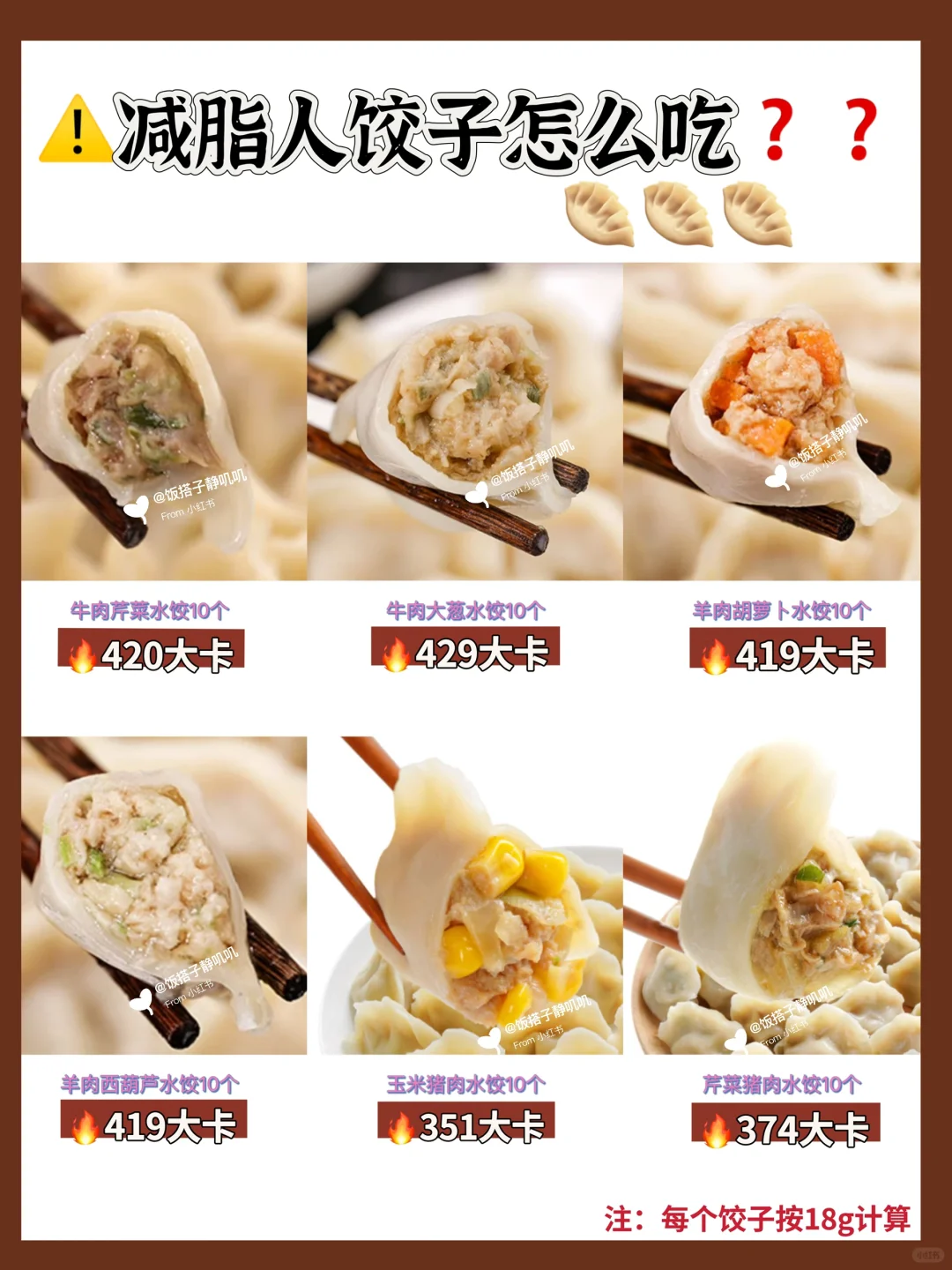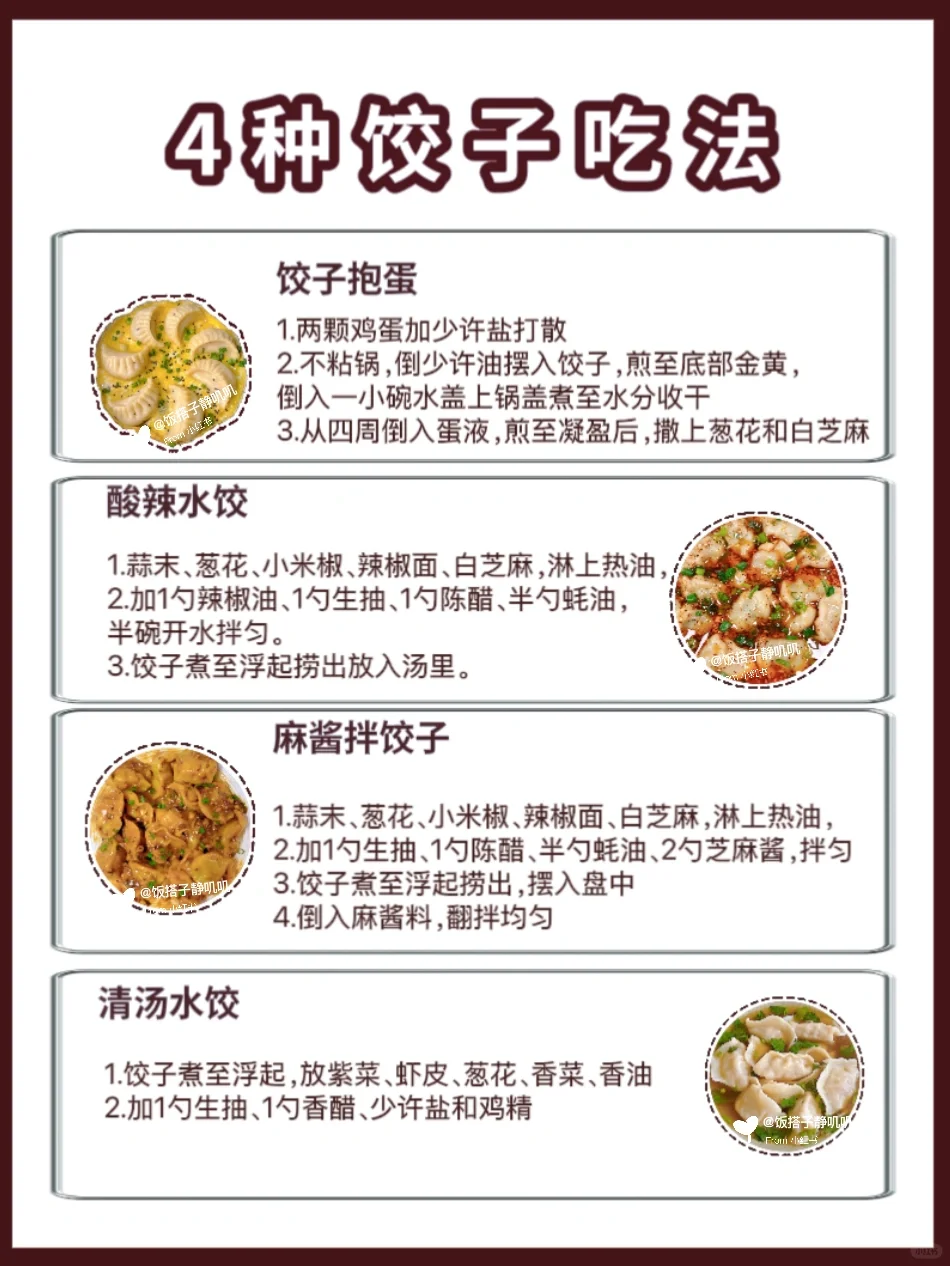 3️⃣煮法的话麻酱拌饺子、酸汤水饺的热量会偏高一些。