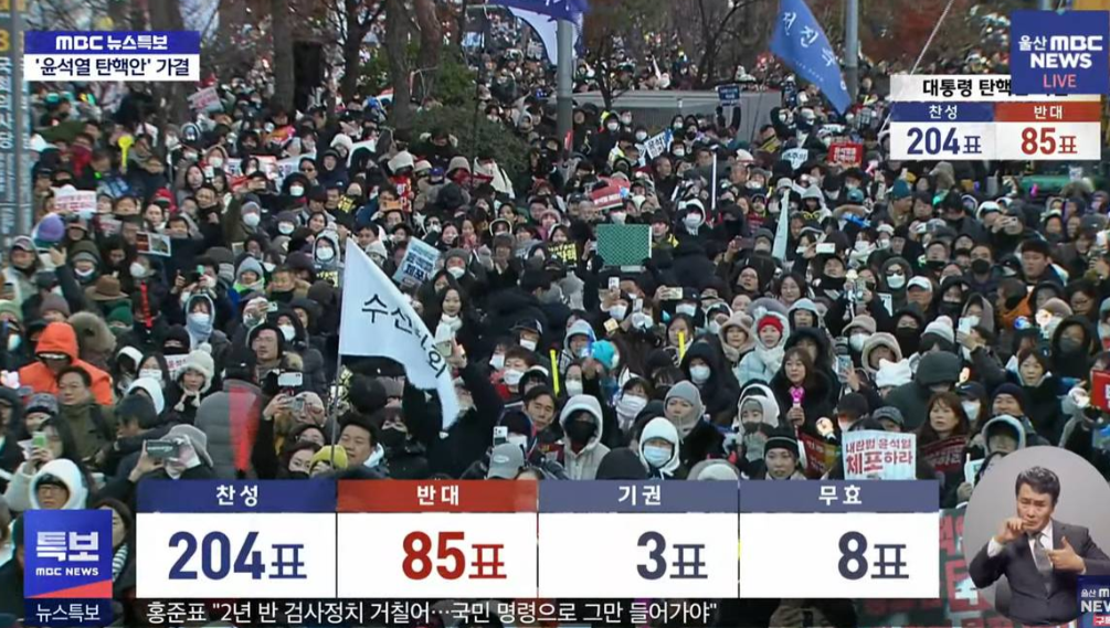 14日下午,韩国国会以204票赞成、85票反对、3票弃权、8票无效的结果,通过了第二份针对尹锡悦的弹劾案。#弹劾案通过!韩国总统尹锡悦被停职#执政党至少贡献了12张赞成票,也就是说至少12位议员没有遵循党内的指示。